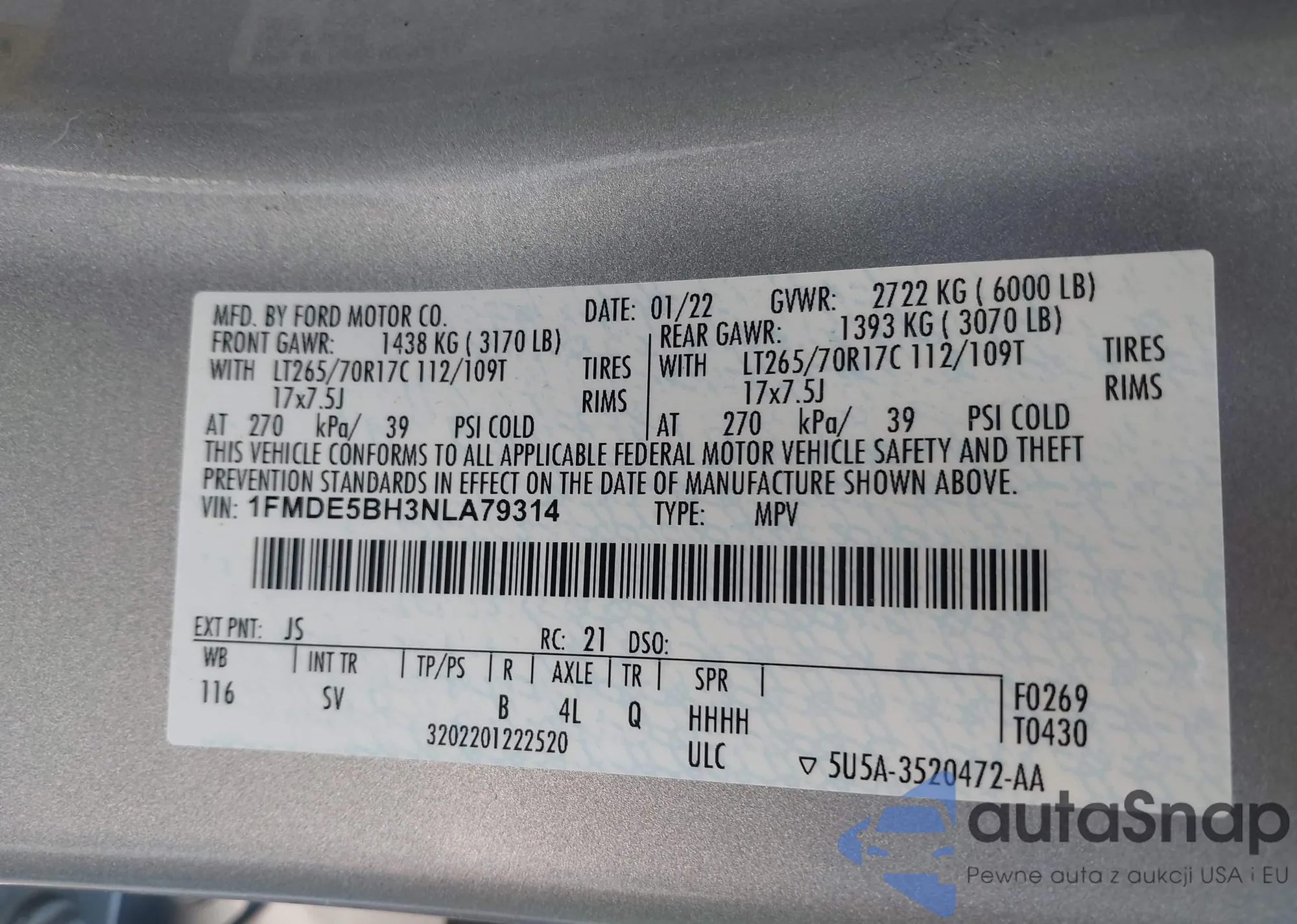 VIN: 1FMDE5BH3NLA79314