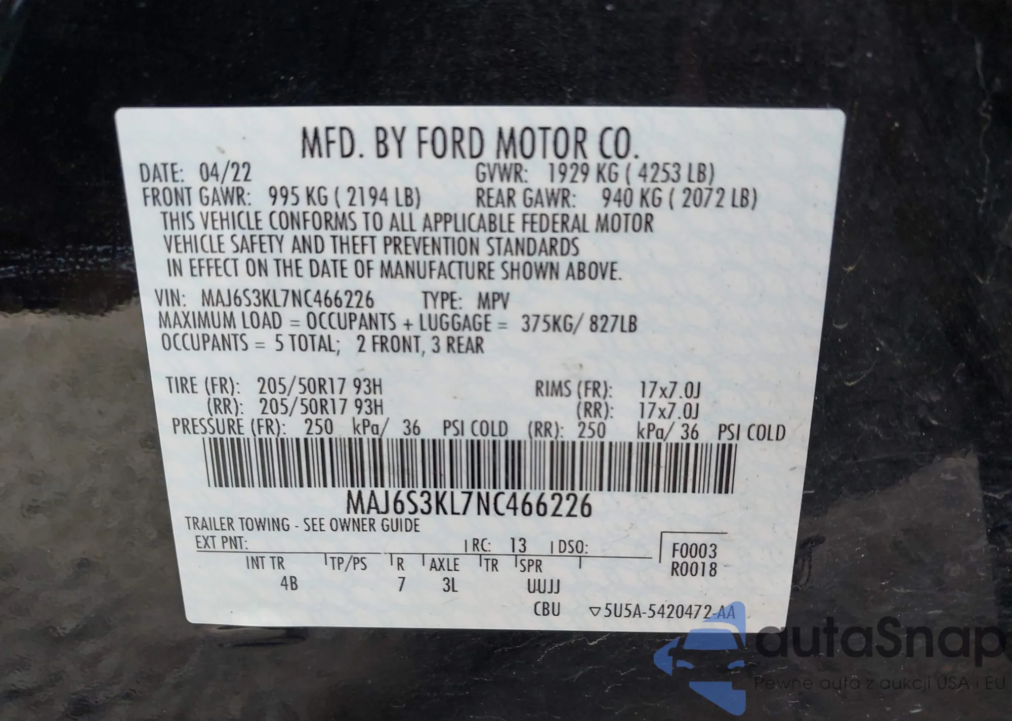 VIN: 0MAJ6S3KL7NC46622