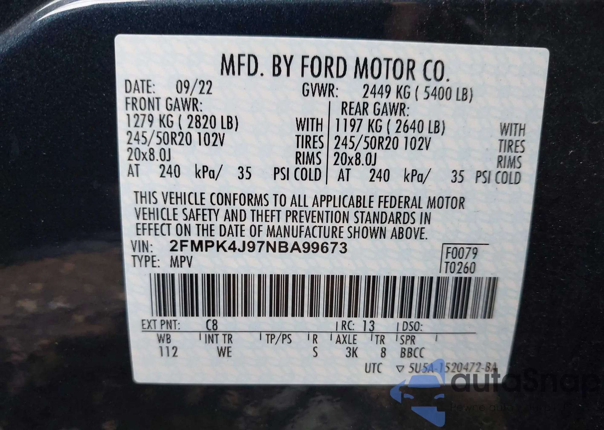 VIN: 2FMPK4J97NBA99673