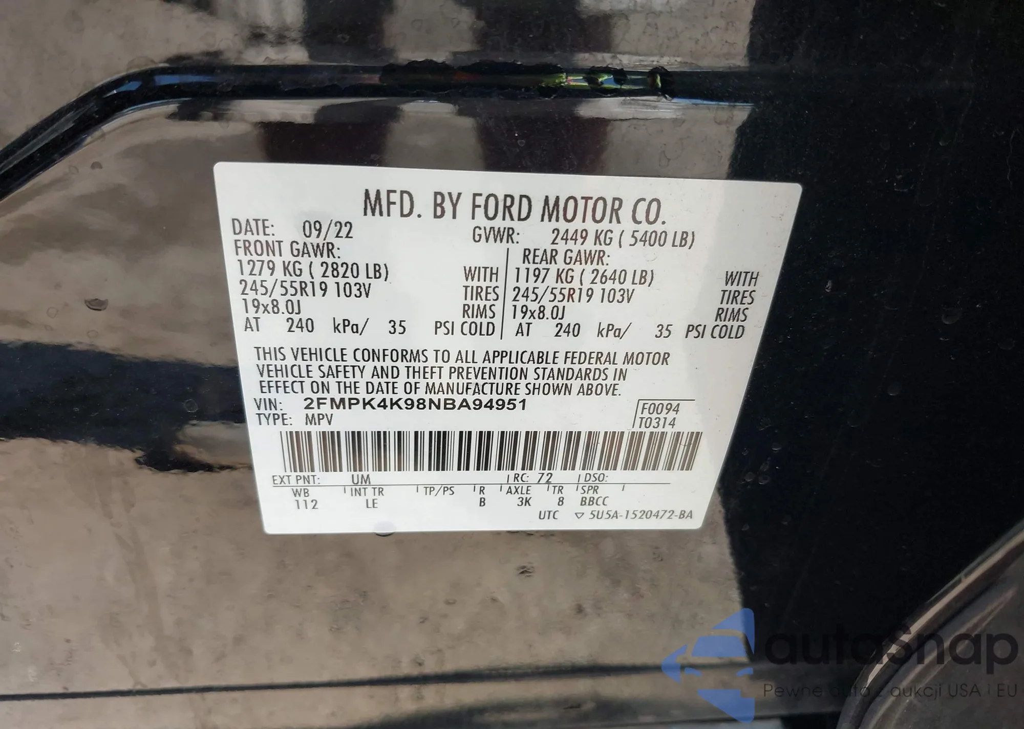 VIN: 2FMPK4K98NBA94951