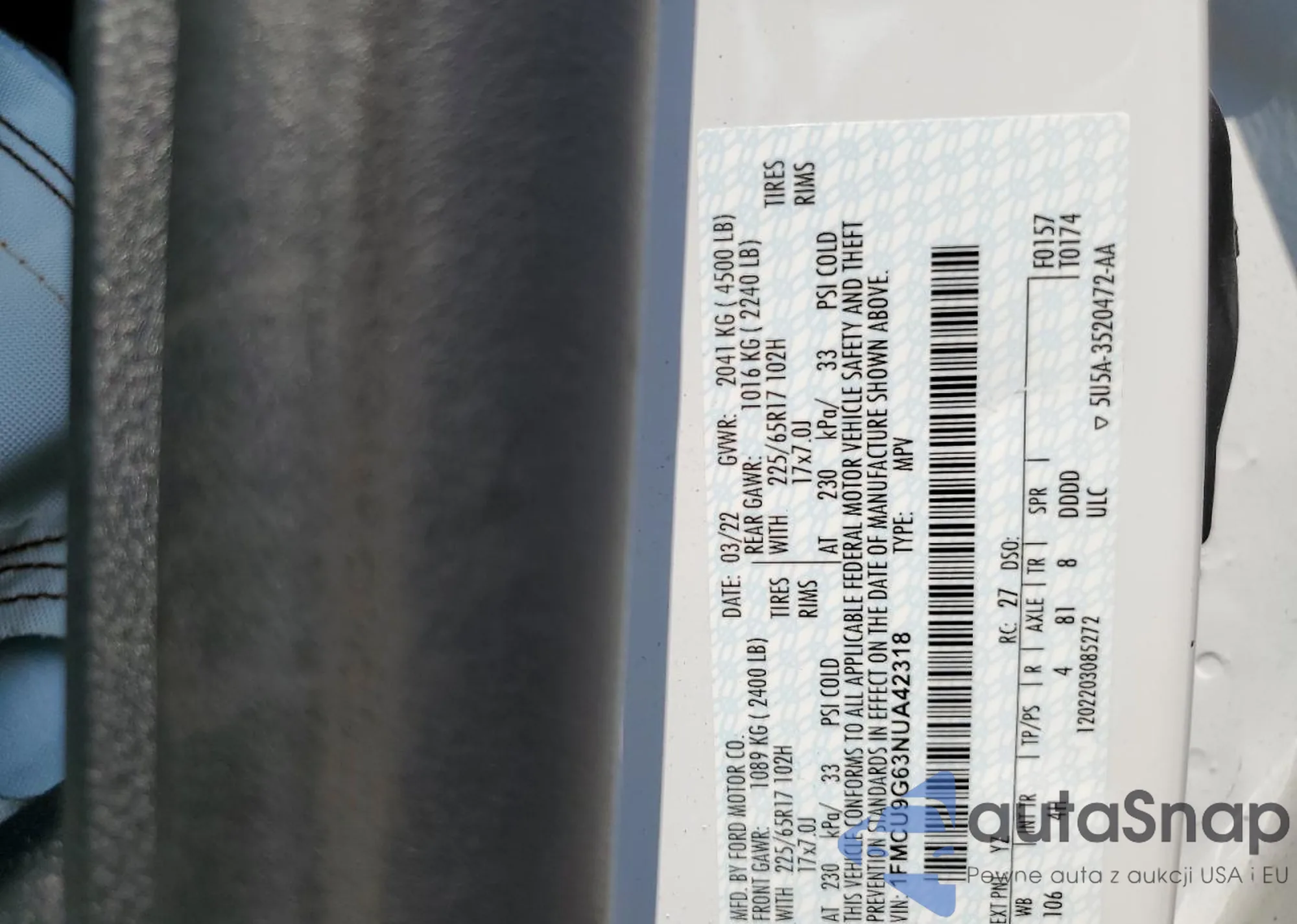 VIN: 1FMCU9G63NUA42318