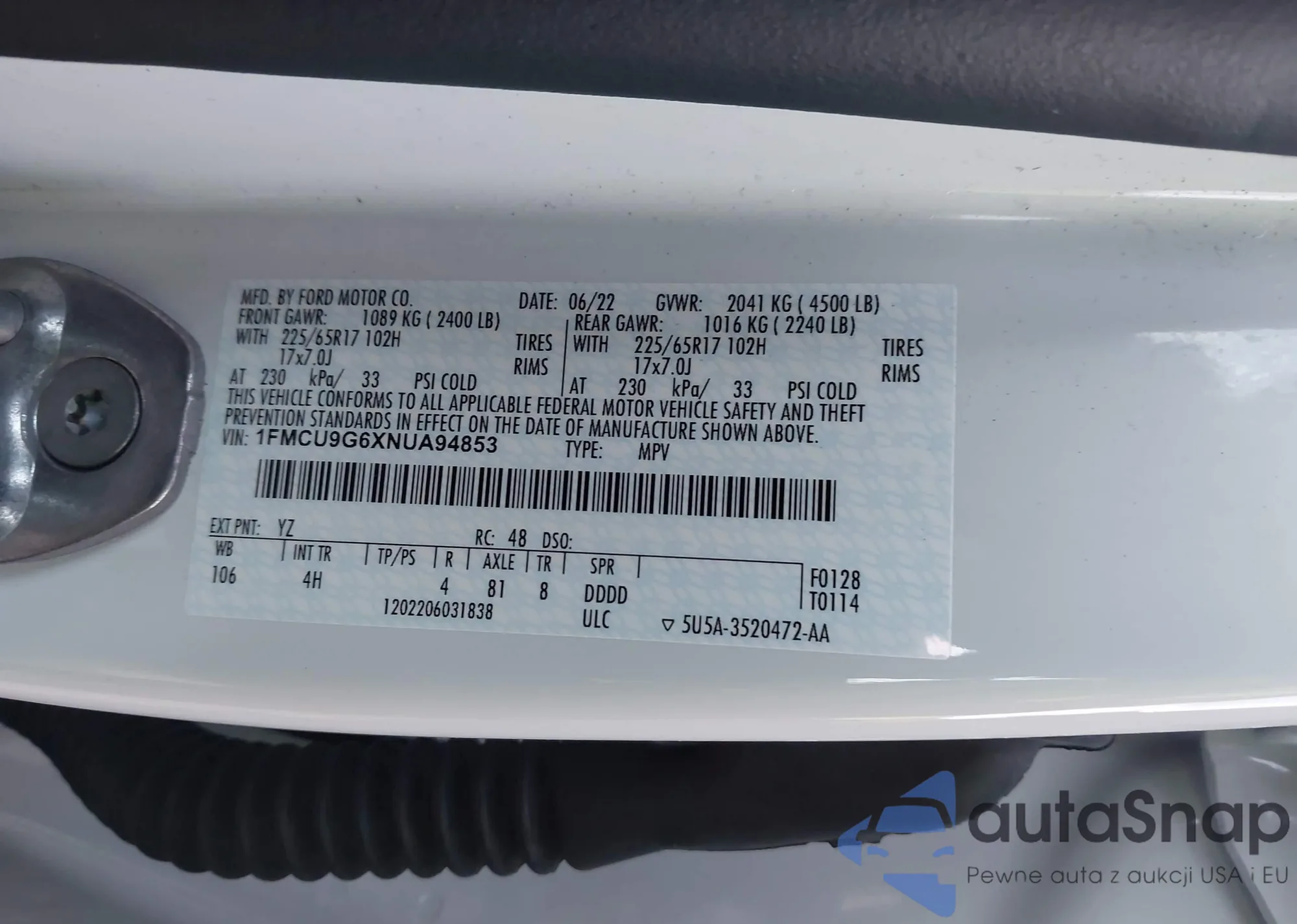 VIN: 1FMCU9G6XNUA94853