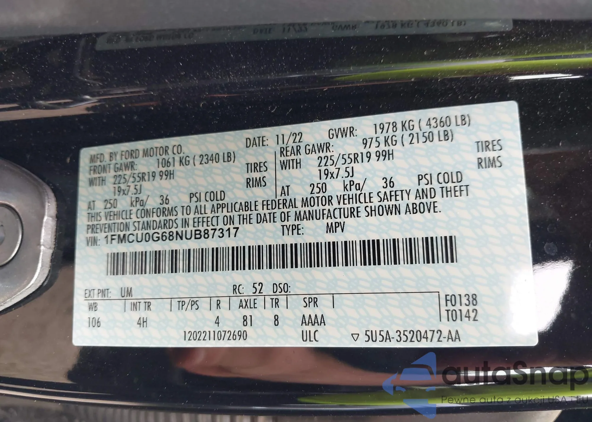 VIN: 1FMCU0G68NUB87317
