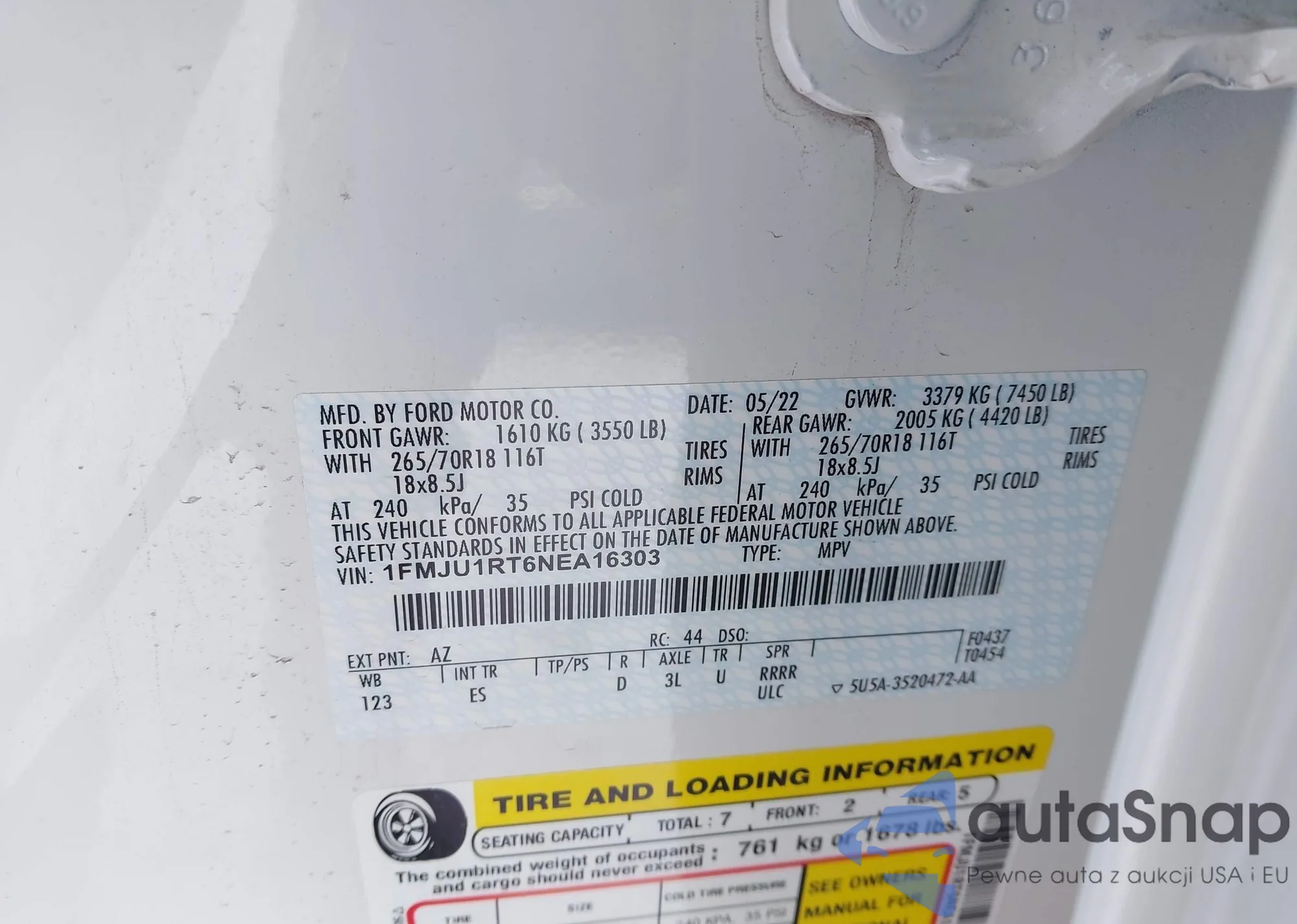 • VIN: 1FMJU1RT6NEA16303