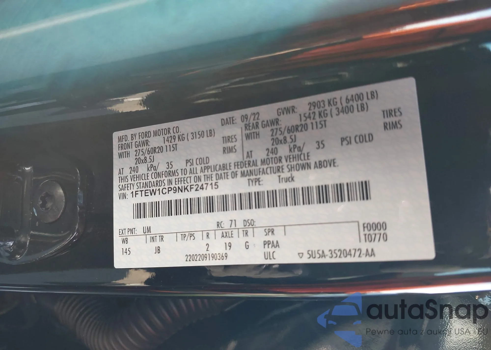 The car Ford F-150 2022 (VIN 1FTEW1CP9NKF24715) has already been auctioned 1 times and/or is sold by an unverified seller. We recommend checking the Carfax report and confirming registration possibilities before purchase.