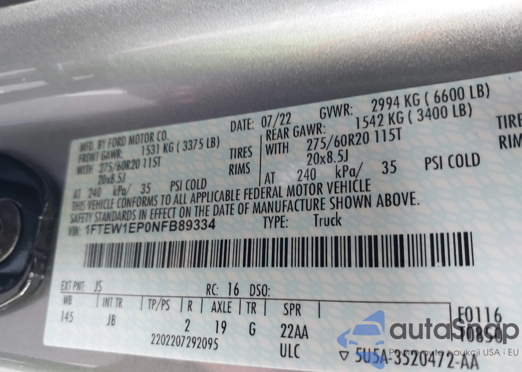 VIN: 1FTEW1EP0NFB89334
