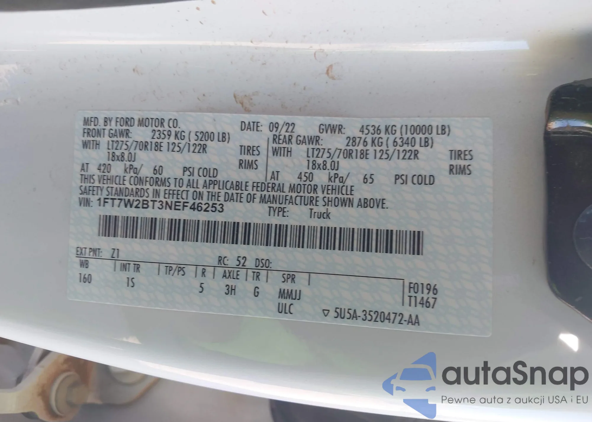 VIN: 1FT7W2BT3NEF46253