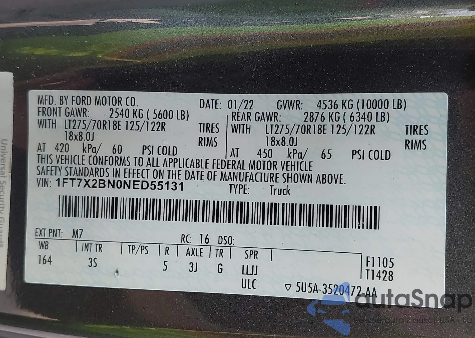 VIN: 1FT7X2BN0NED55131