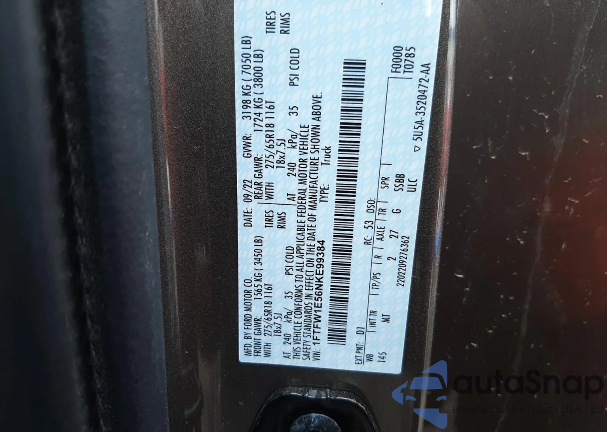 VIN: 1FTFW1E56NKE99384
