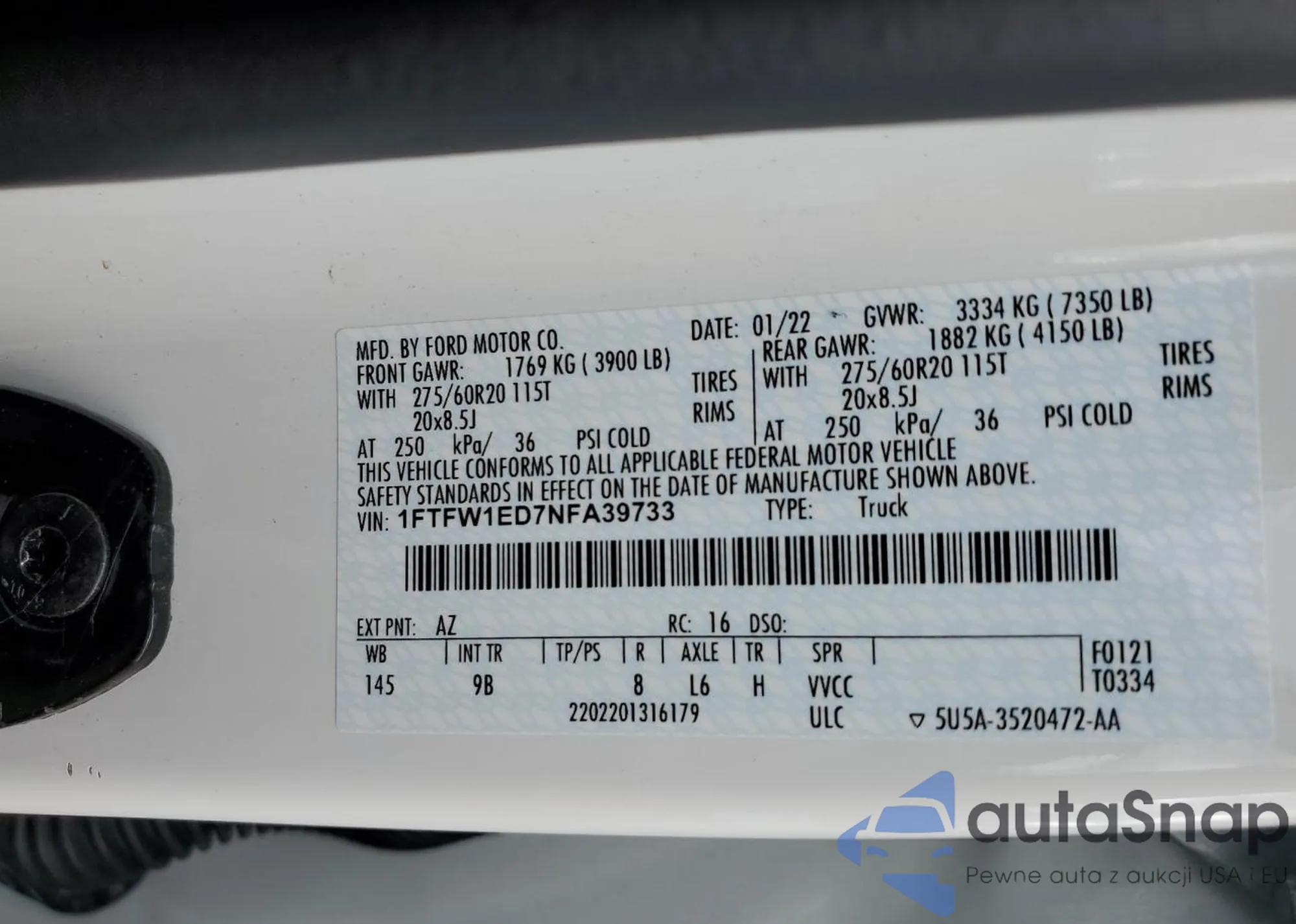 • VIN: 1FTFW1ED7NFA39733
