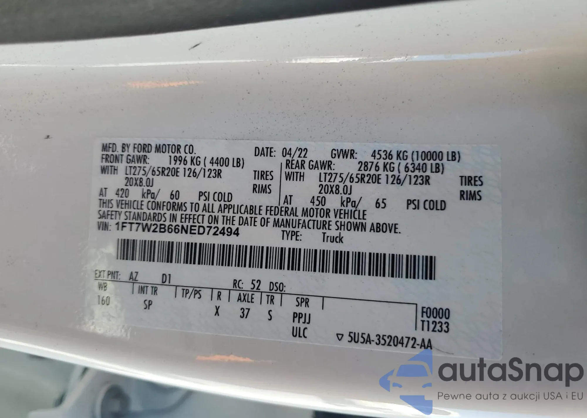 The car Ford F250 2022 (VIN 1FT7W2B66NED72494) has already been auctioned 1 times and/or is sold by an unverified seller. We recommend checking the Carfax report and confirming registration possibilities before purchase.
