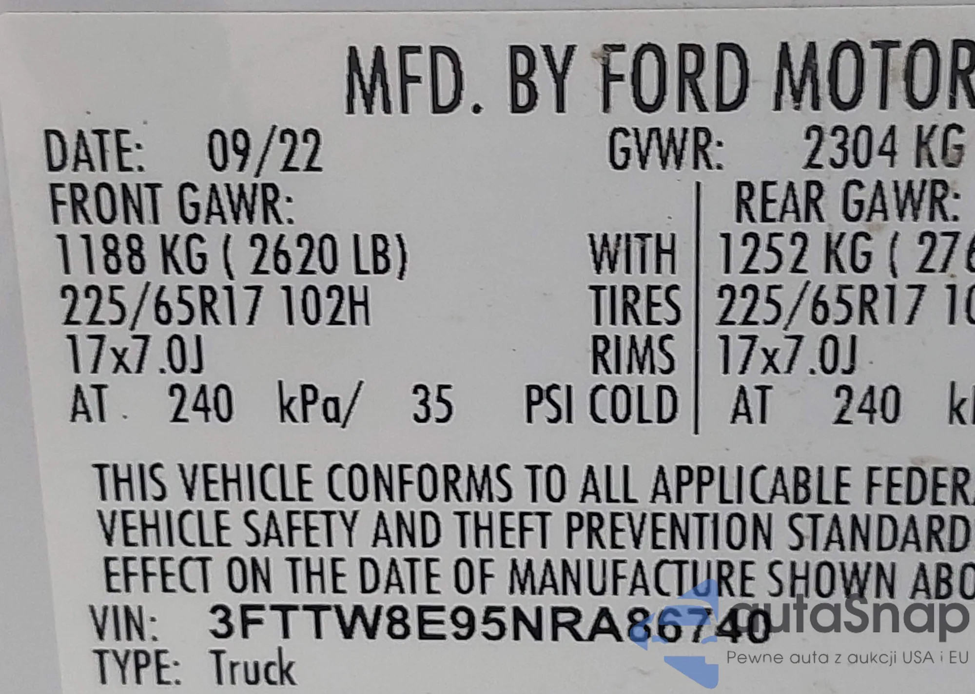 VIN: 3FTTW8E95NRA86740