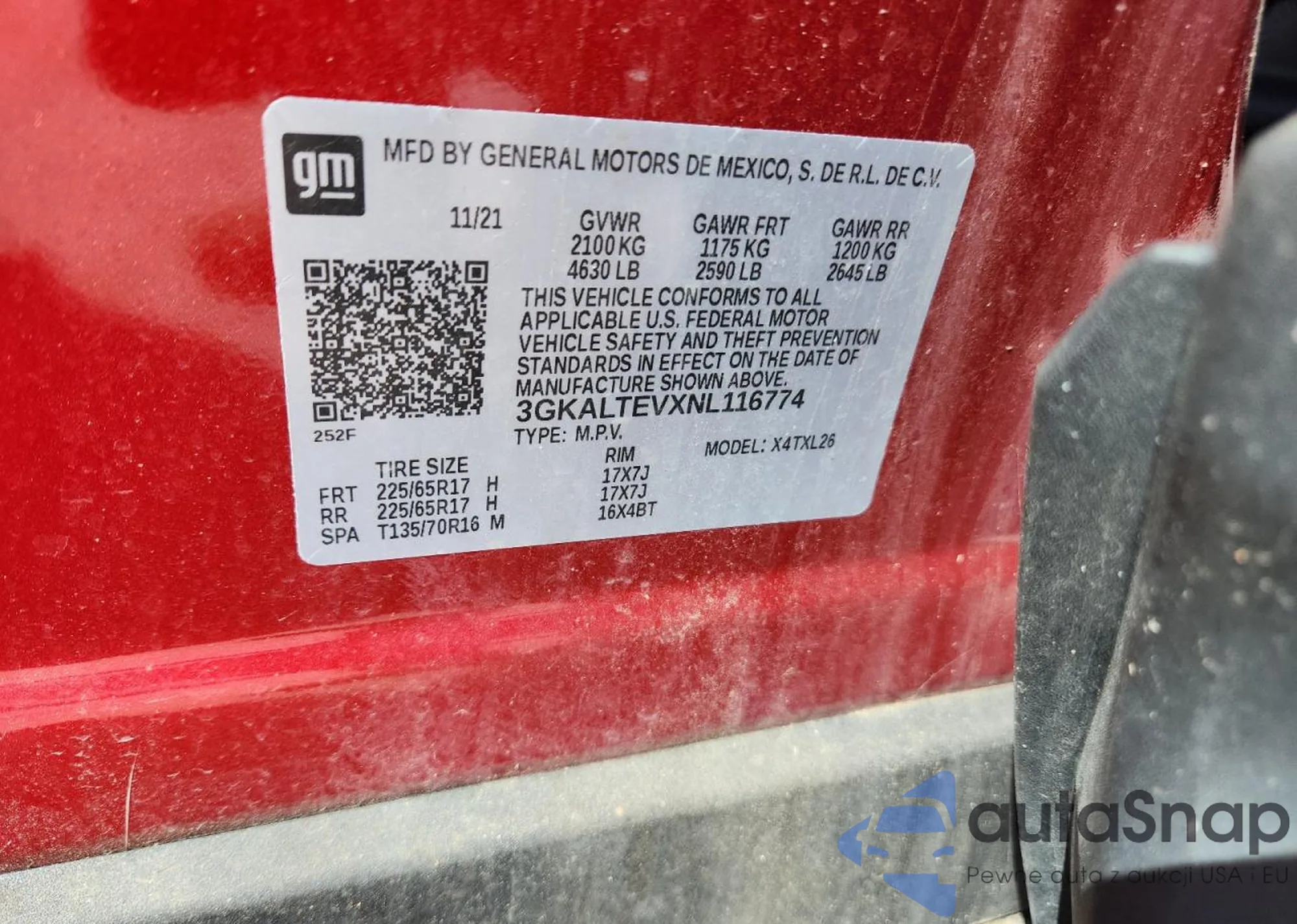 VIN: 3GKALTEVXNL116774