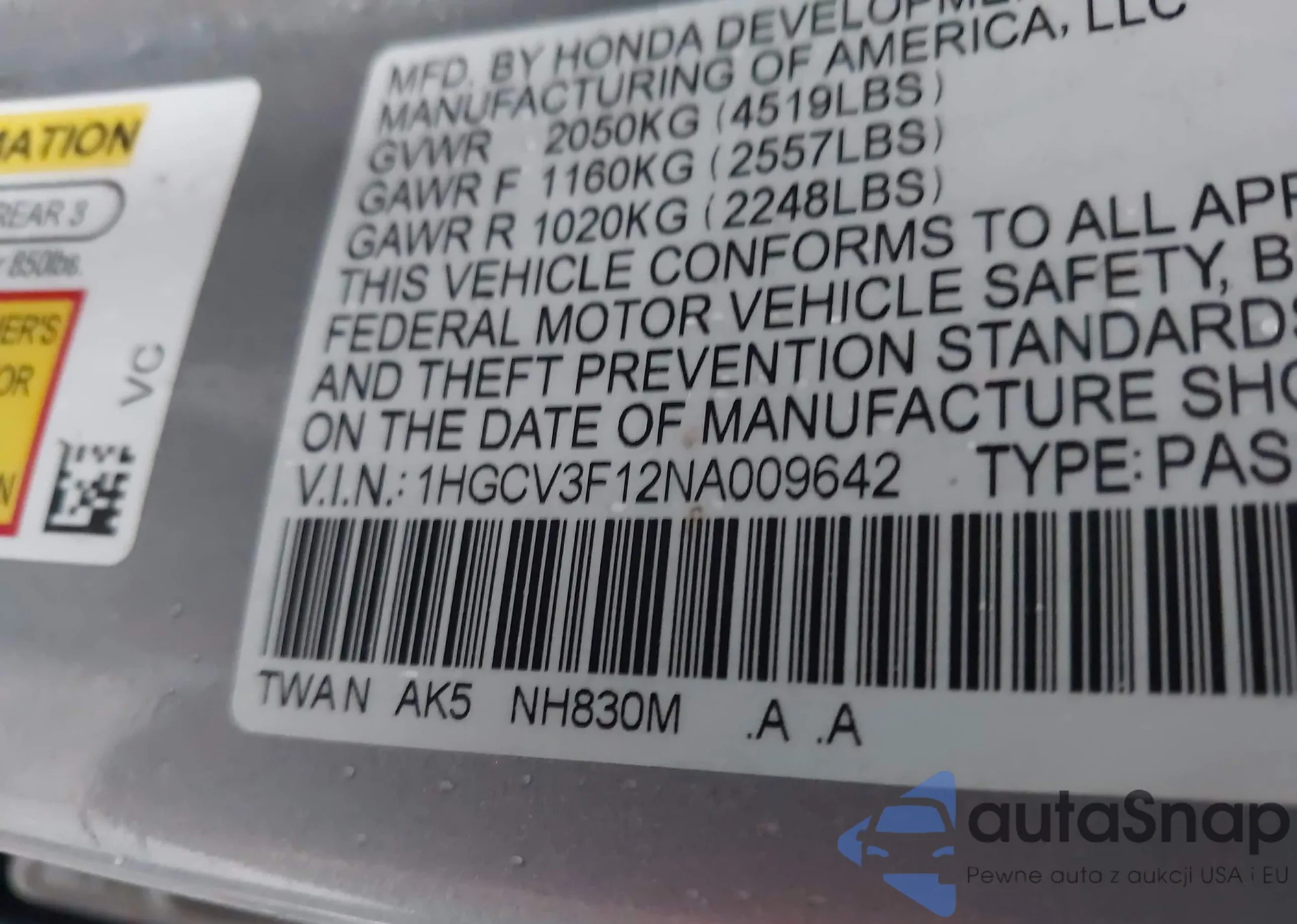 VIN: 1HGCV3F12NA009642