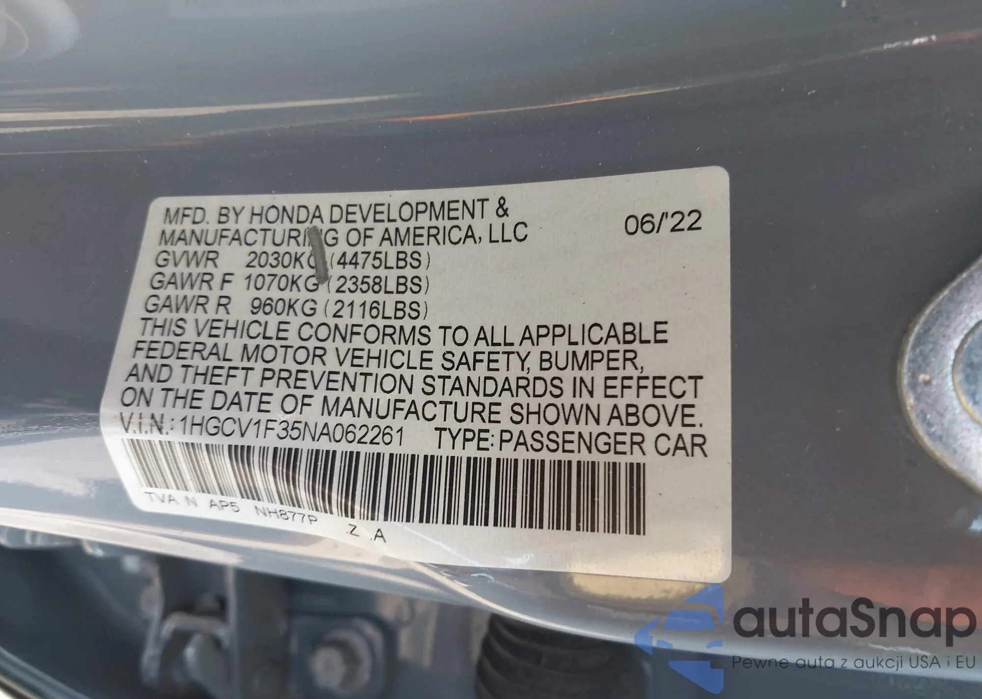 VIN: 1HGCV1F35NA062261