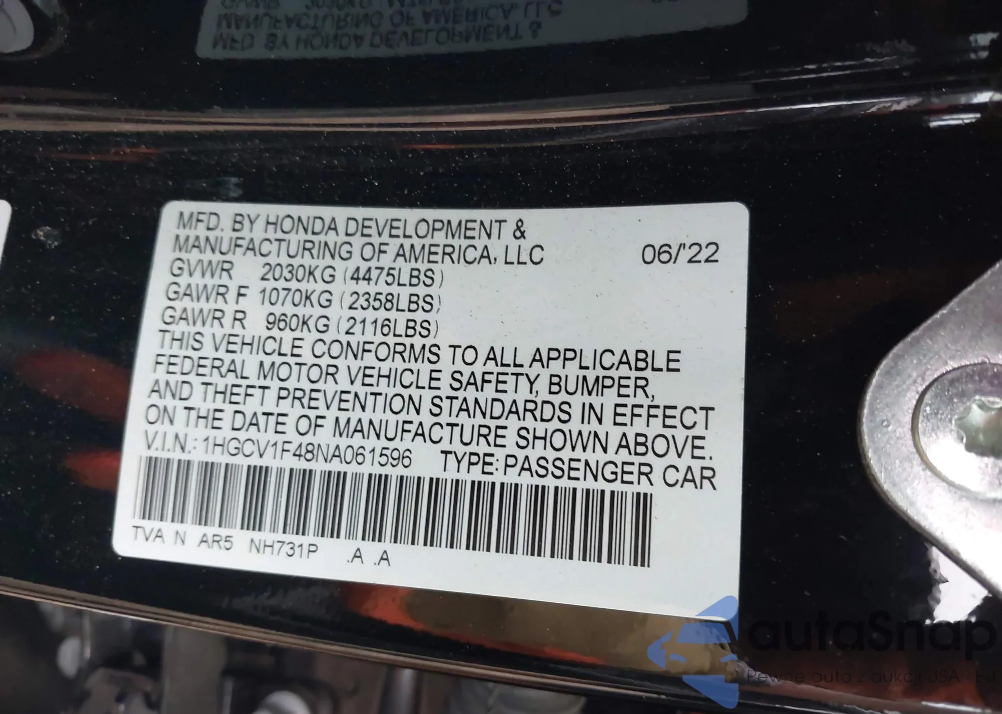 VIN: 1HGCV1F48NA061596