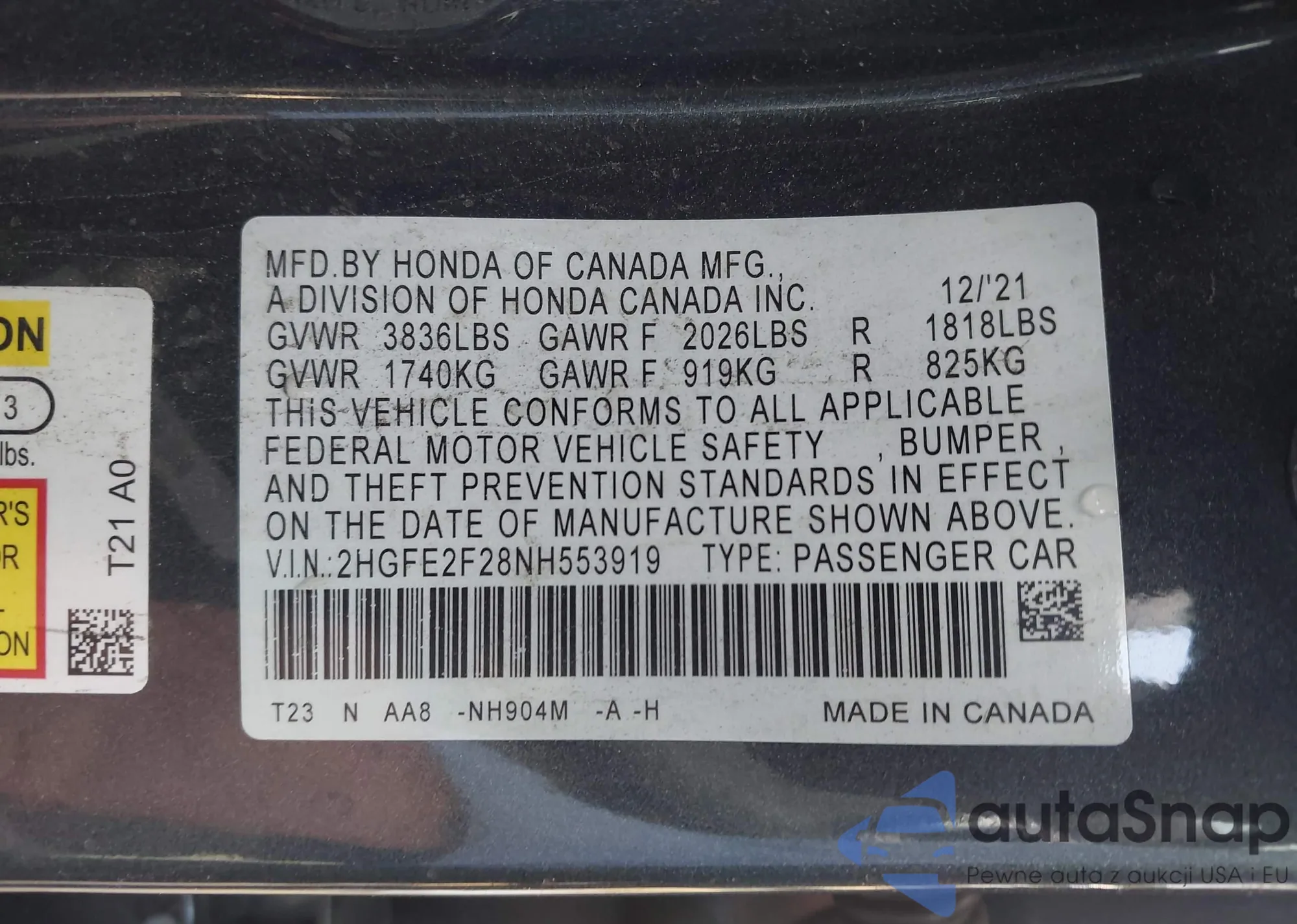 VIN: 2HGFE2F28NH553919
