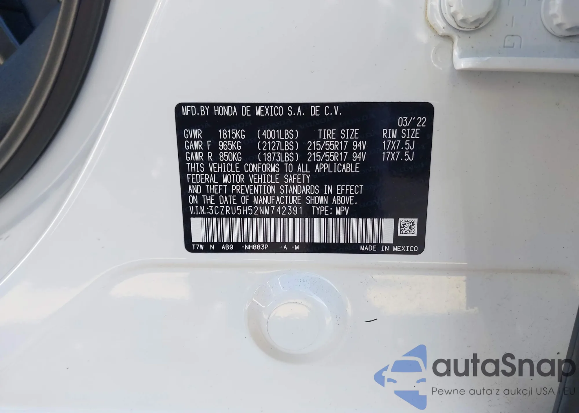 VIN: 3CZRU5H52NM742391