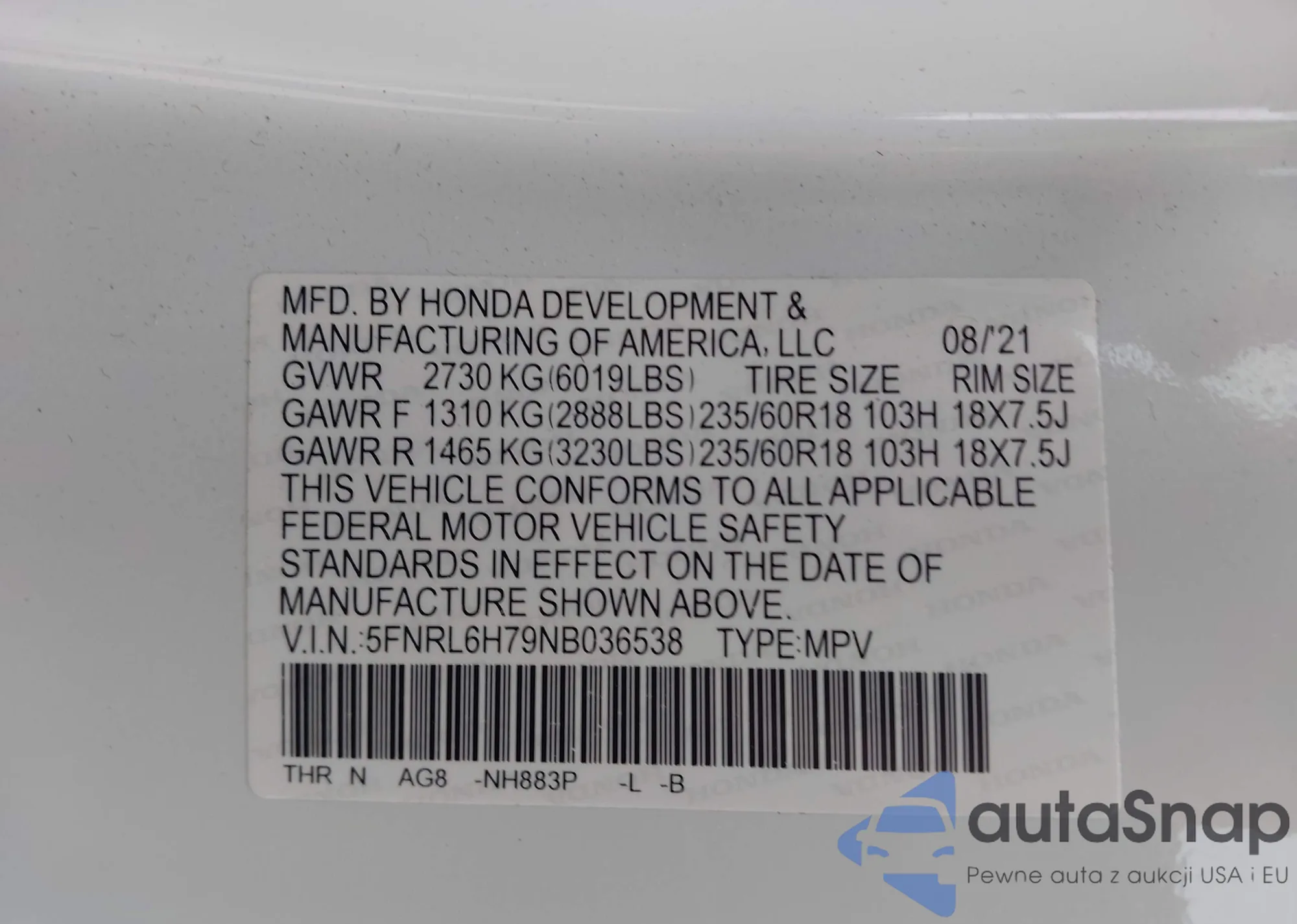 VIN: 5FNRL6H79NB036538