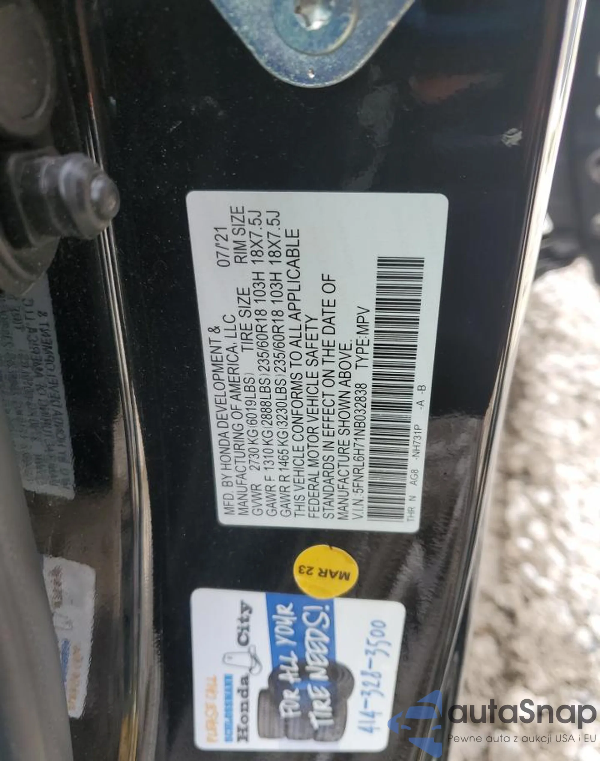 VIN: 5FNRL6H71NB032838