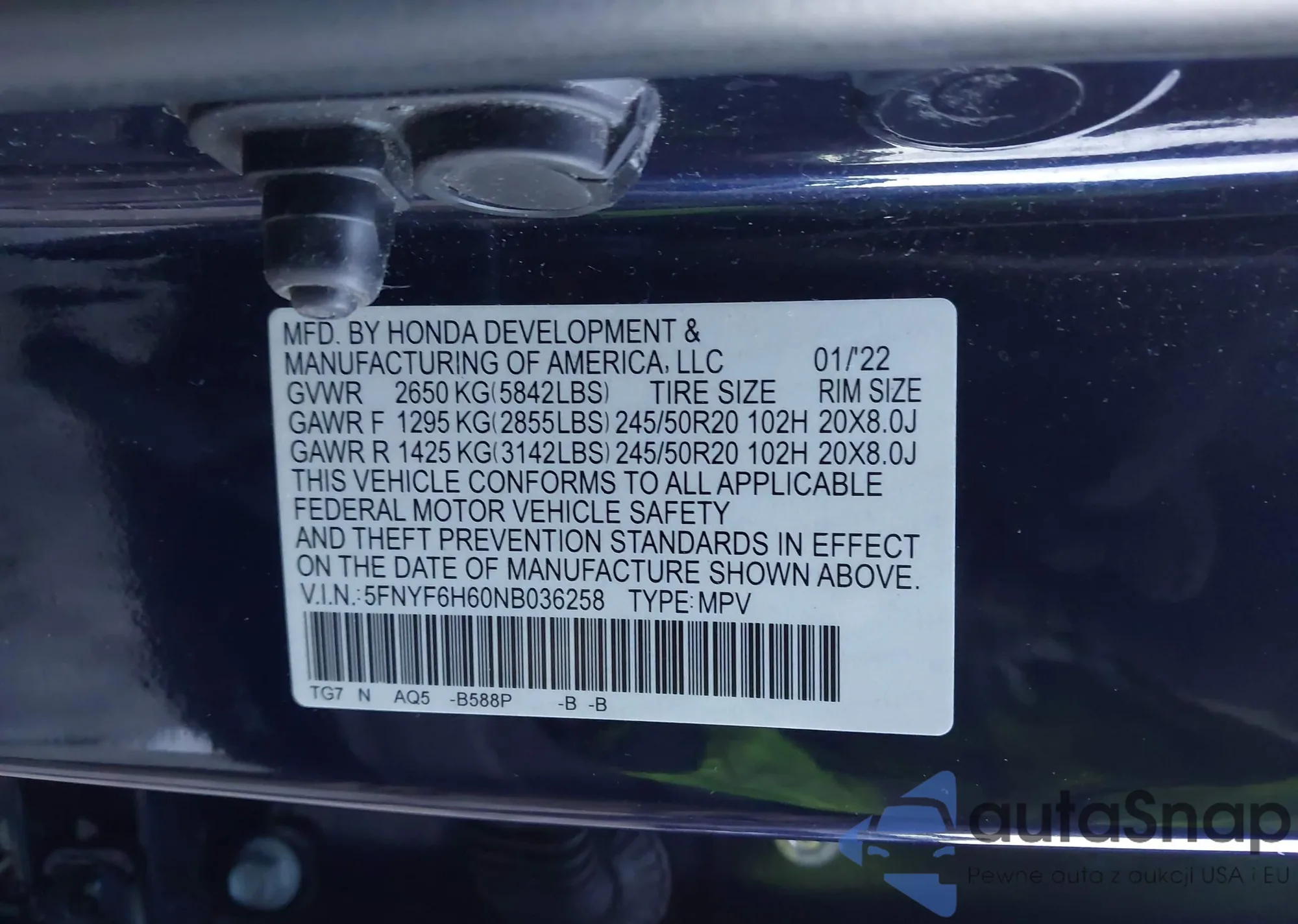 The car Honda Pilot 2022 (VIN 5FNYF6H60NB036258) has not been auctioned before. The documents are clean, and the mileage matches or is below the market average. Sold by an insurance company – we recommend purchase. Delivery to the port will take approx. 6–8 weeks.