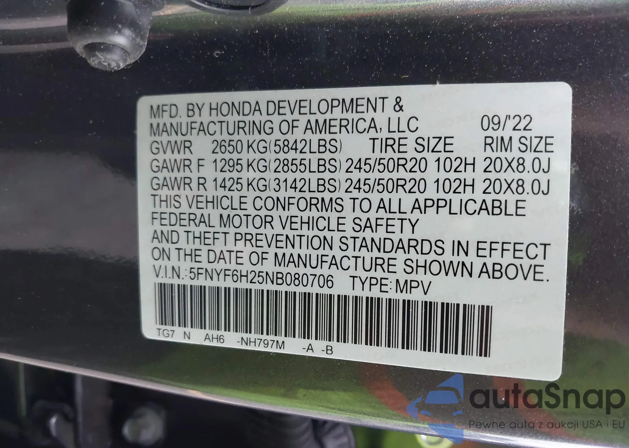 VIN: 5FNYF6H25NB080706