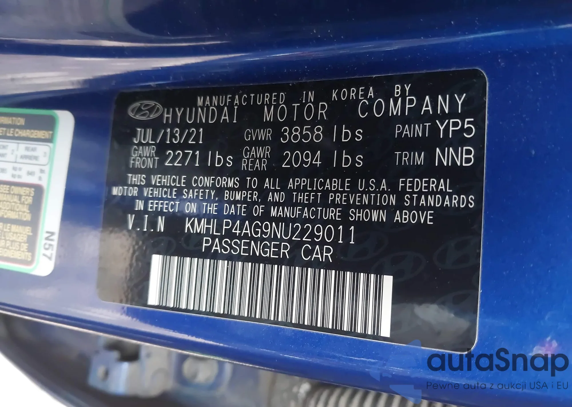 VIN: KMHLP4AG9NU229011