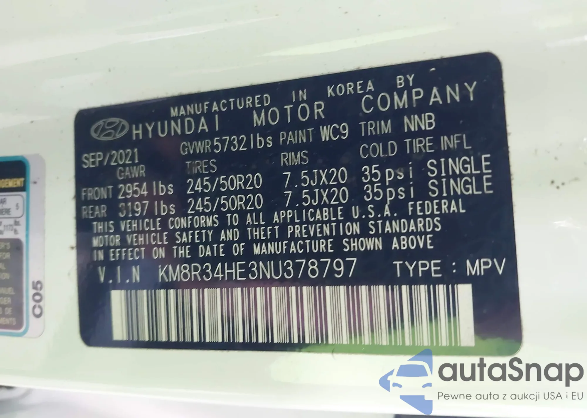 VIN: KM8R34HE3NU378797