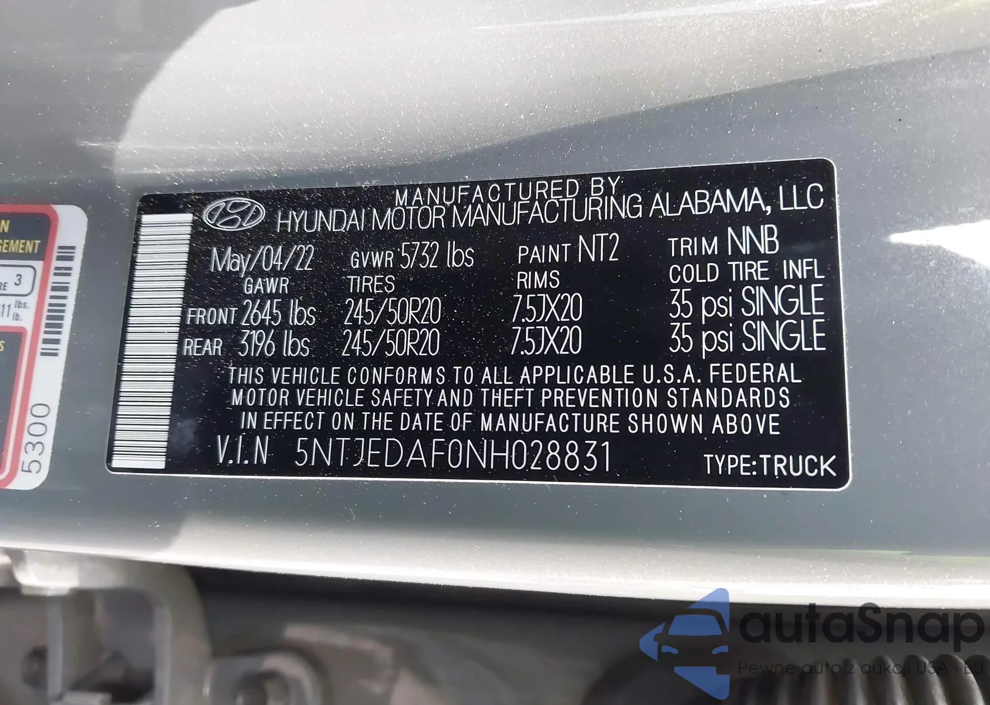 VIN: 5NTJEDAF0NH028831