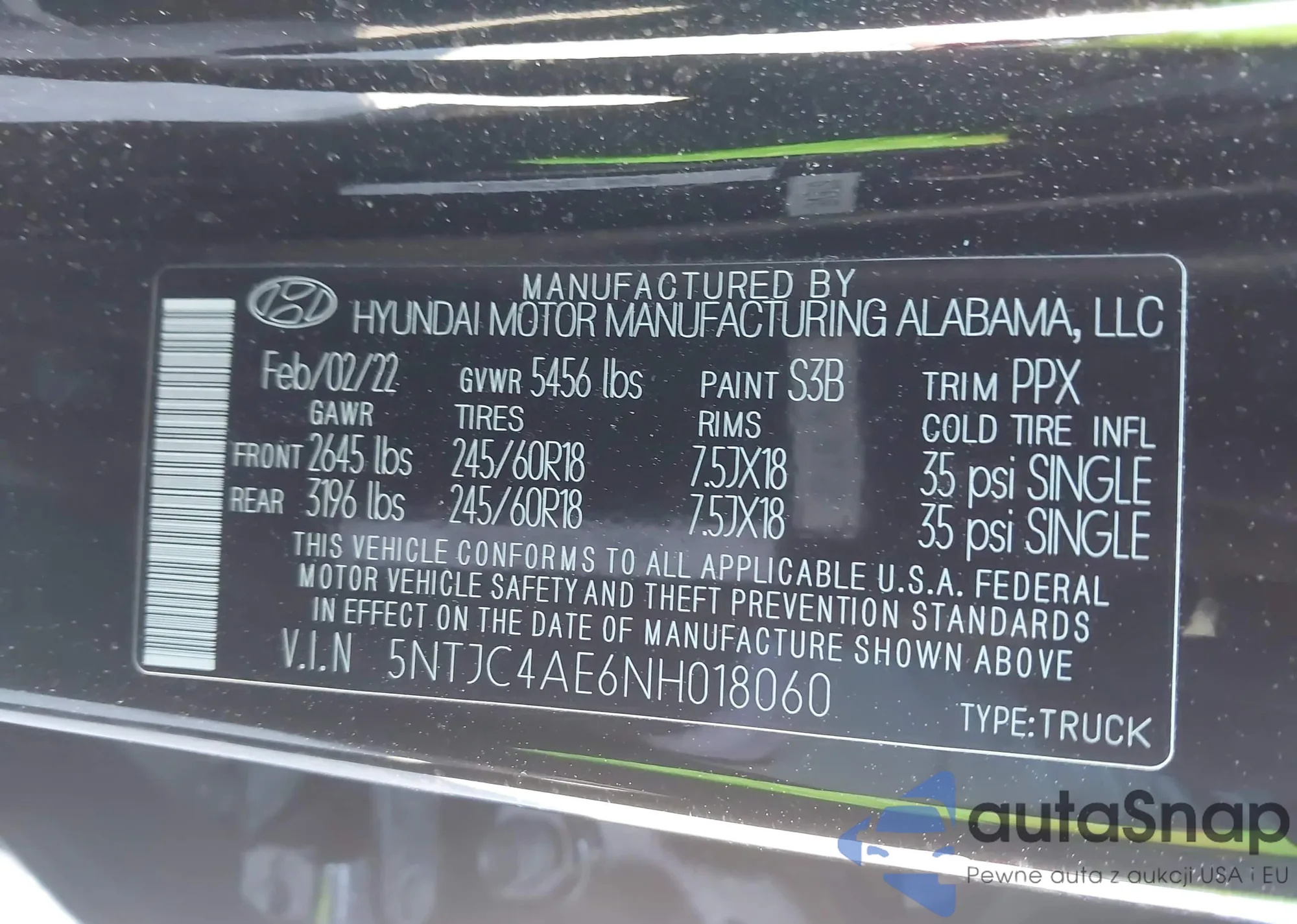 • VIN: 5NTJC4AE6NH018060