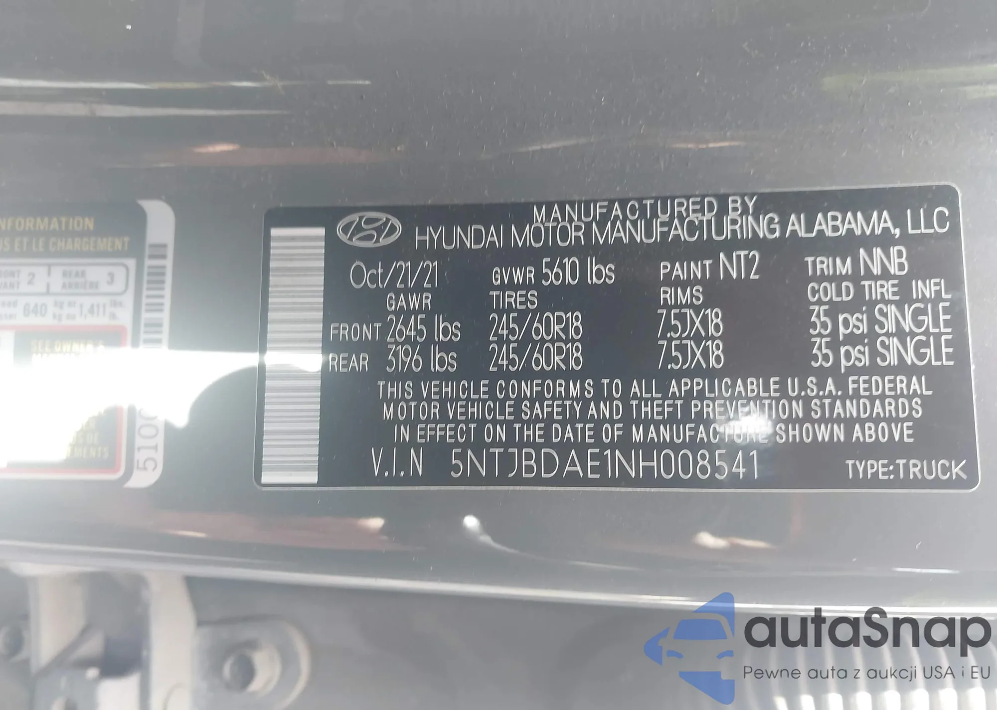 The car Hyundai Santa Cruz 2022 (VIN 5NTJBDAE1NH008541) has not been auctioned before. The documents are clean, and the mileage matches or is below the market average. Sold by an insurance company – we recommend purchase. Delivery to the port will take approx. 6–8 weeks.