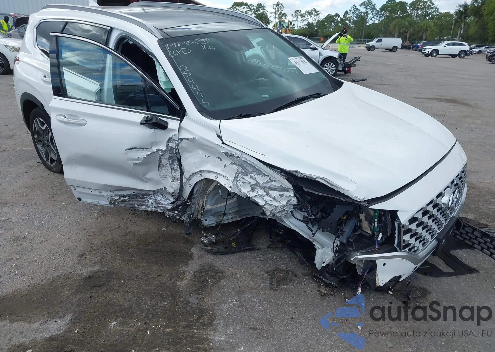 The car Hyundai Santa Fe 2022 (VIN KM8S5DA17NU054495) has documents that prevent registration. Export and registration may be difficult. Contact AutaSnap experts to find alternatives.