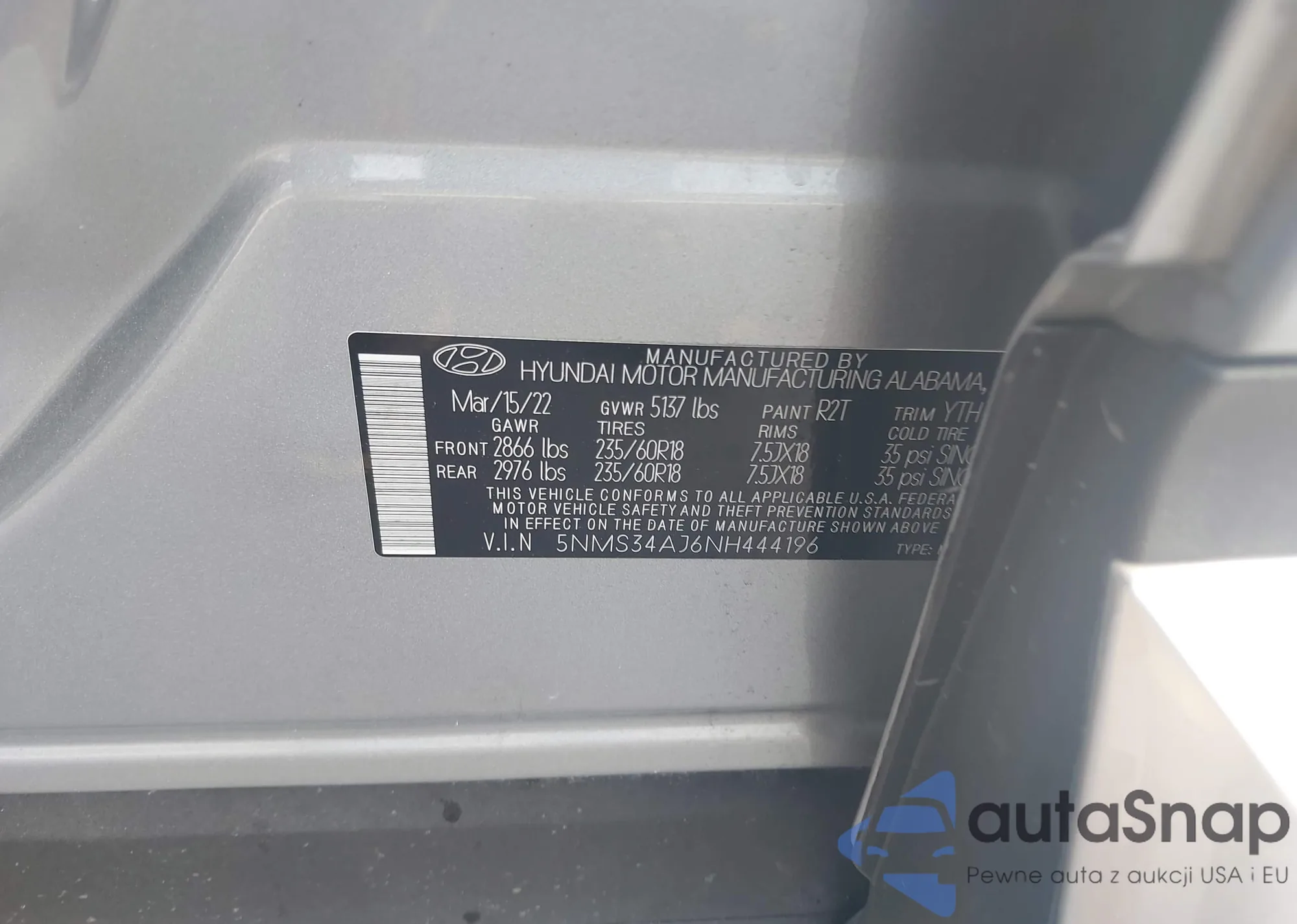 VIN: 5NMS34AJ6NH444196