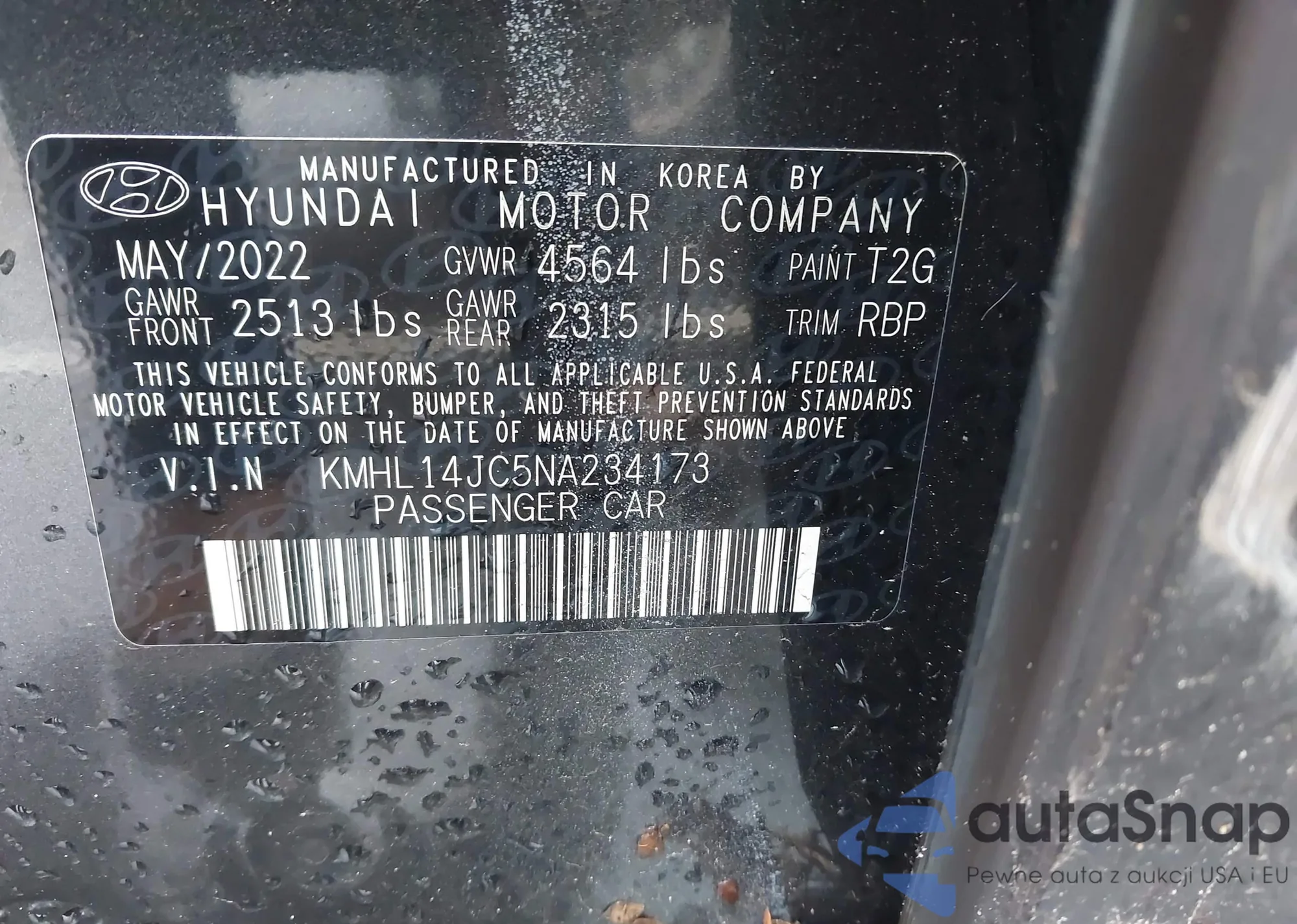 VIN: KMHL14JC5NA234173