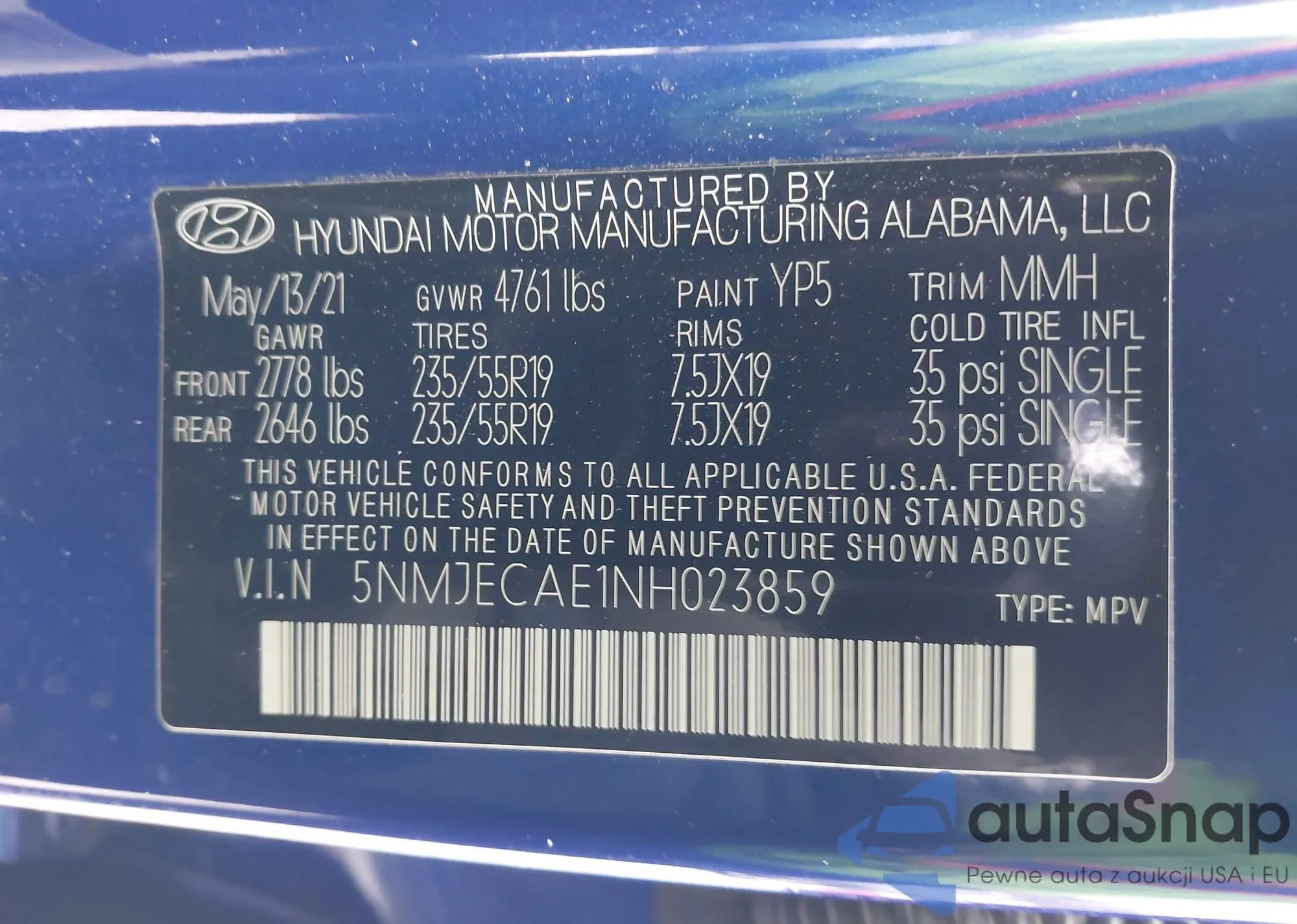 The car Hyundai Tucson 2022 (VIN 5NMJECAE1NH023859) has not been auctioned before. The documents are clean, and the mileage matches or is below the market average. Sold by an insurance company – we recommend purchase. Delivery to the port will take approx. 6–8 weeks.