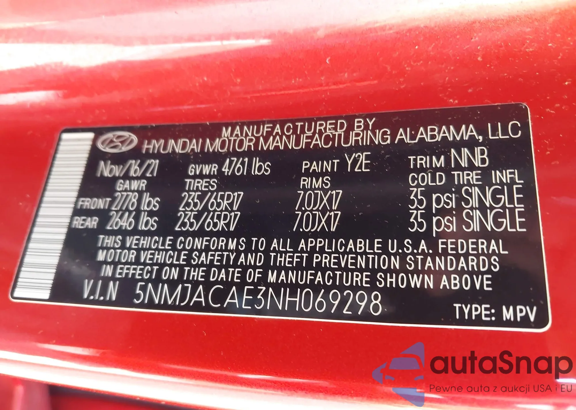 VIN: 5NMJACAE3NH069298