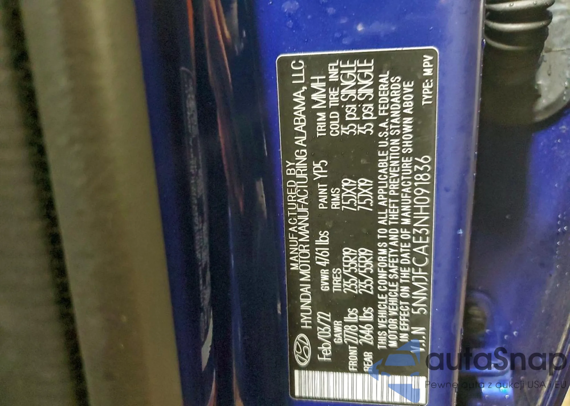 The car Hyundai Tucson 2022 (VIN 5NMJFCAE3NH091836) has not been auctioned before. The documents are clean, and the mileage matches or is below the market average. Sold by an insurance company – we recommend purchase. Delivery to the port will take approx. 6–8 weeks.