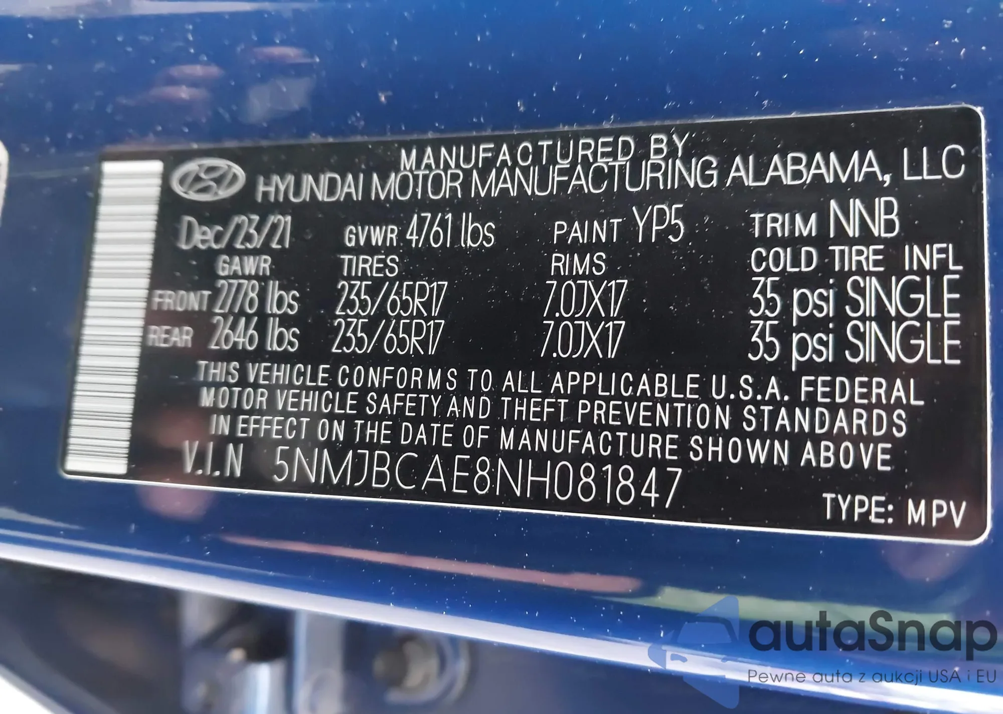 5NMJBCAE8NH081847 IAAI