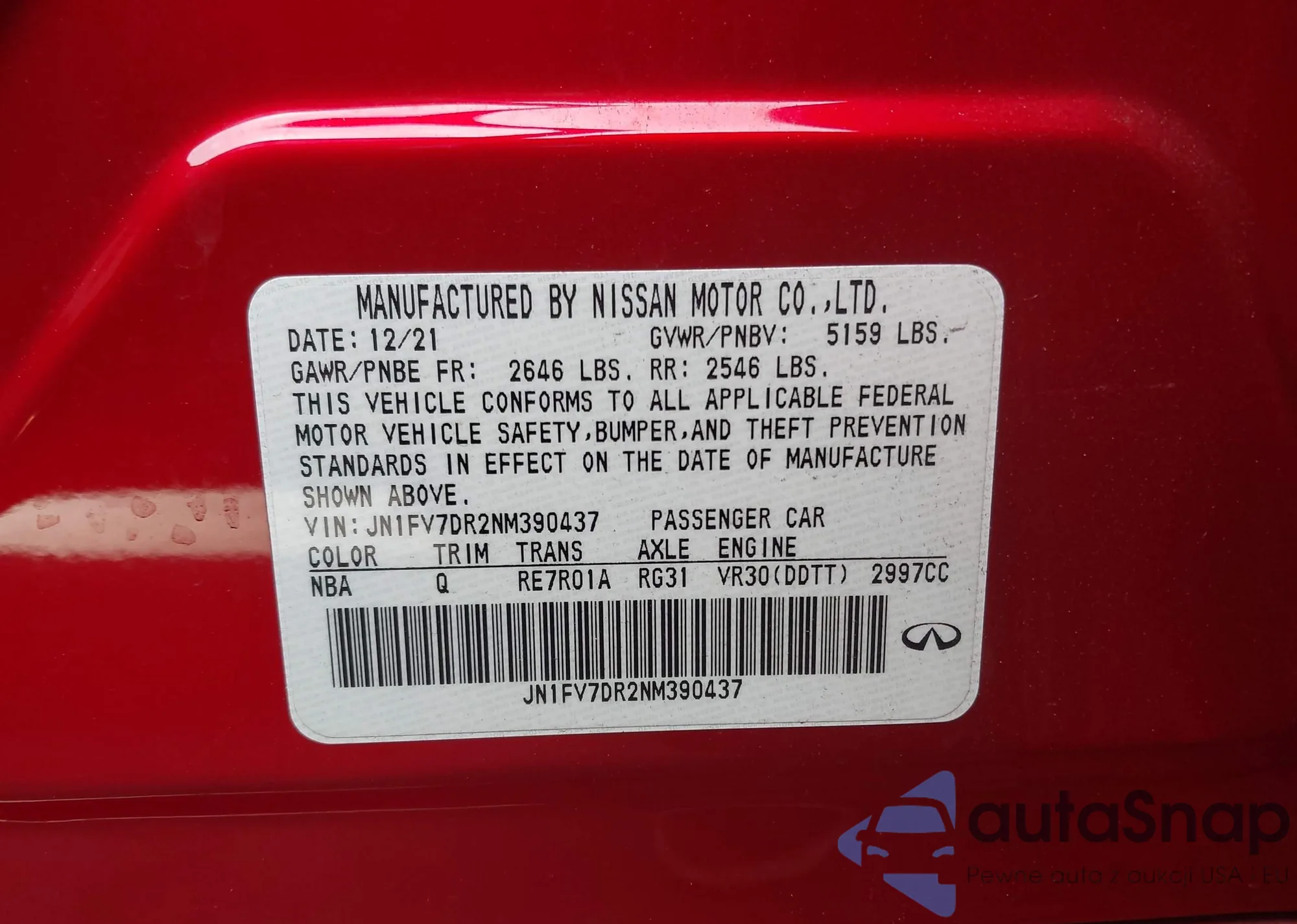 • VIN: JN1FV7DR2NM390437