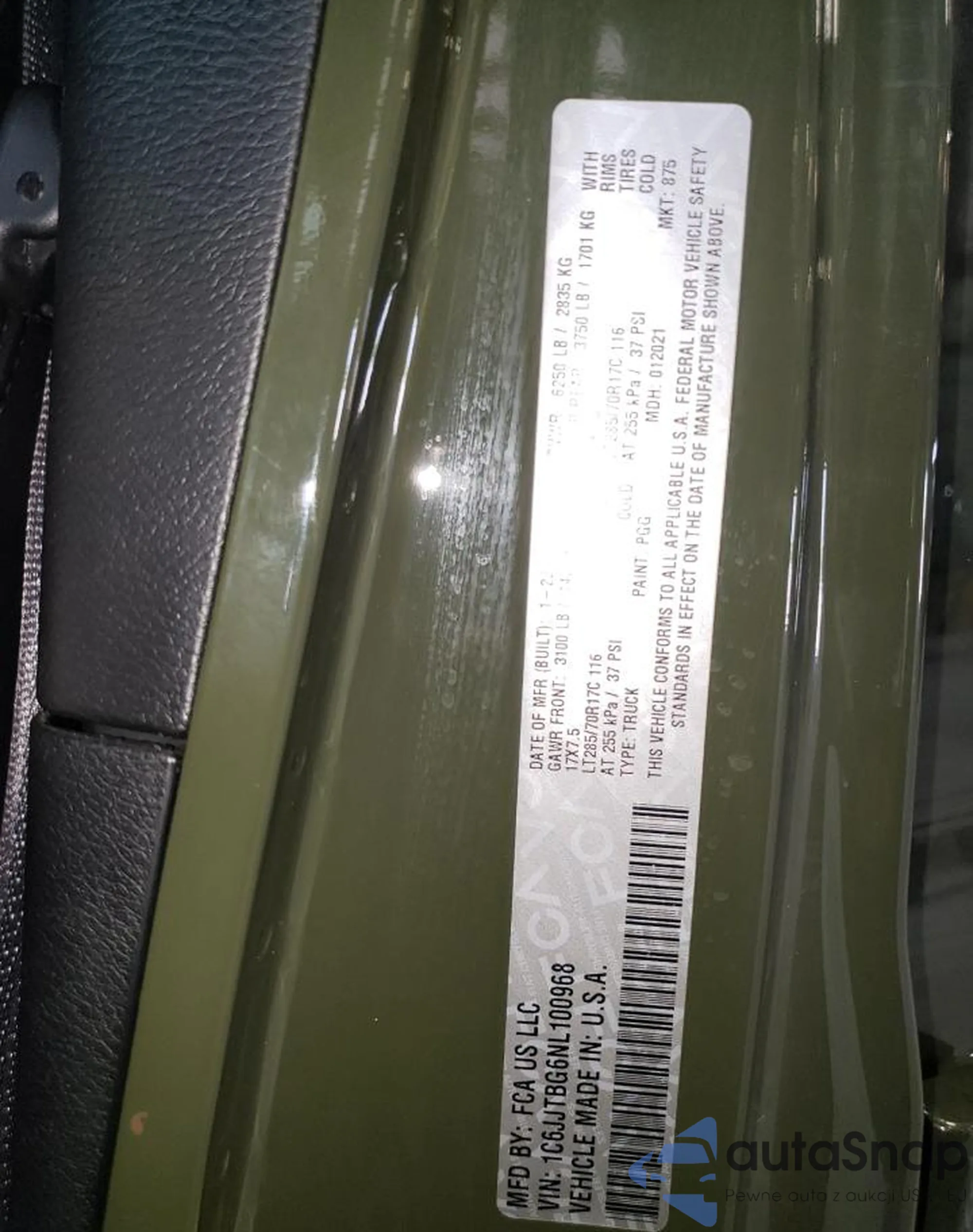 VIN: 1C6JJTBG6NL100968