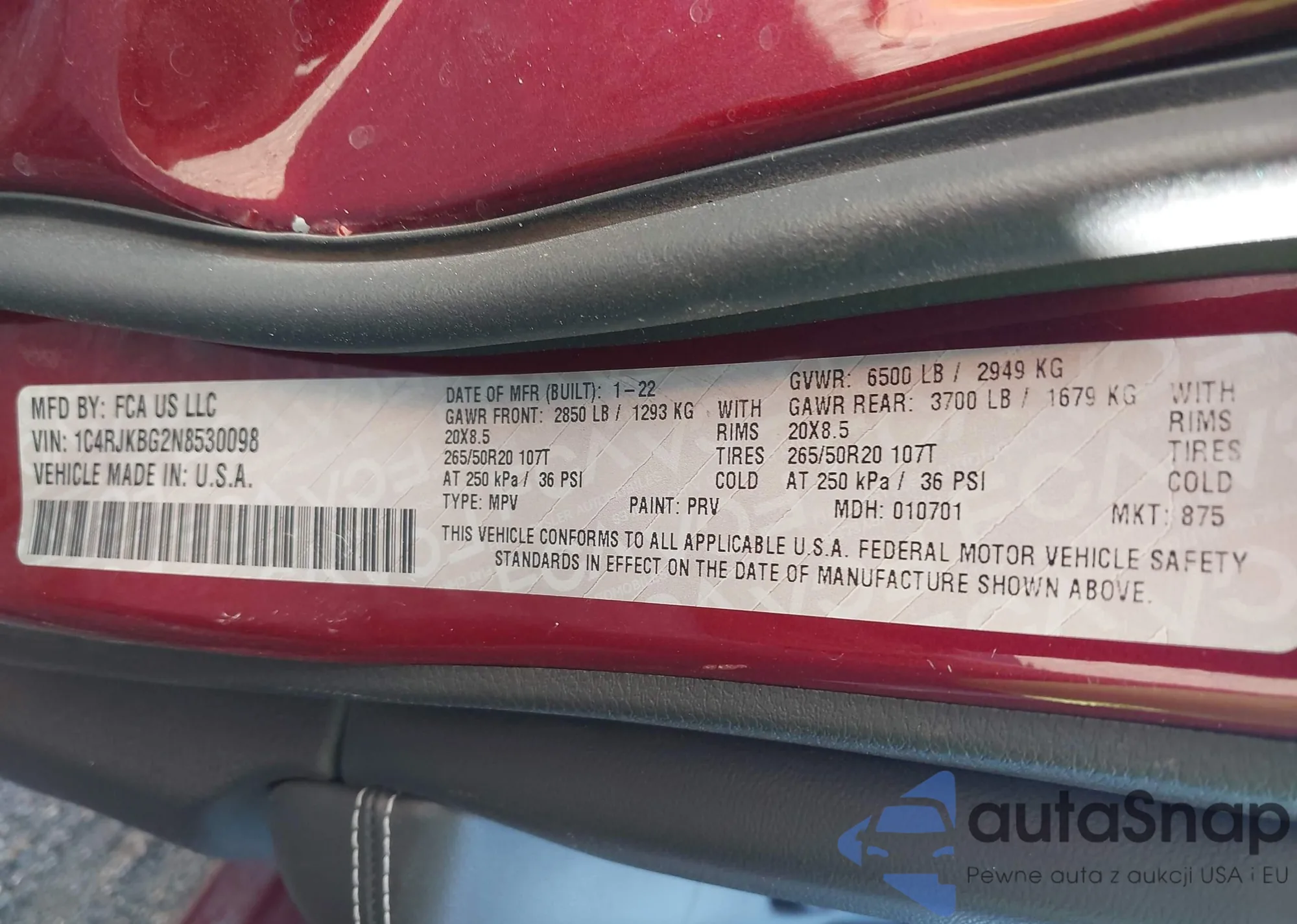 VIN: 1C4RJKBG2N8530098