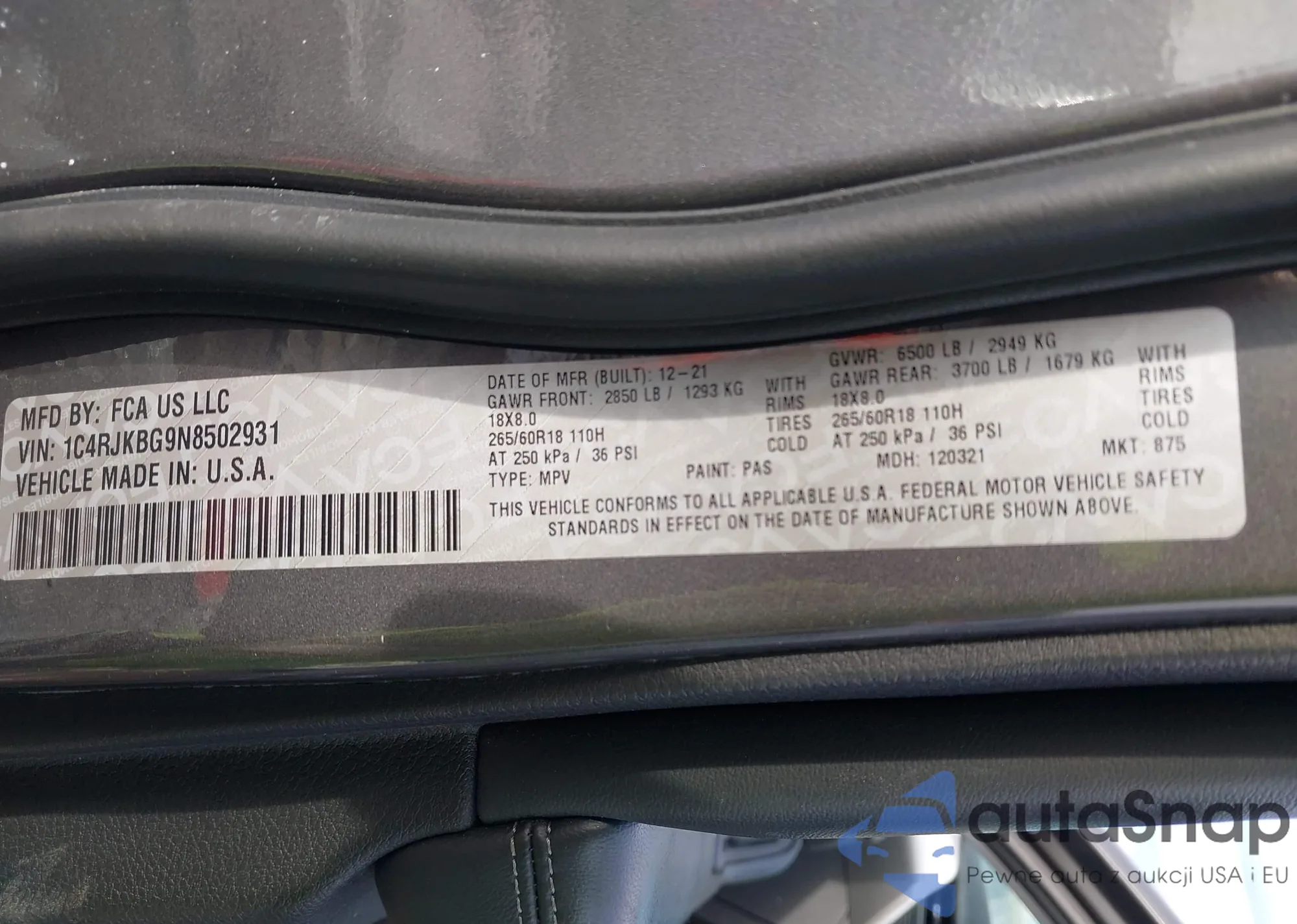 The car Jeep Grand Cherokee 2022 (VIN 1C4RJKBG9N8502931) has not been auctioned before. The documents are clean, and the mileage matches or is below the market average. Sold by an insurance company – we recommend purchase. Delivery to the port will take approx. 6–8 weeks.