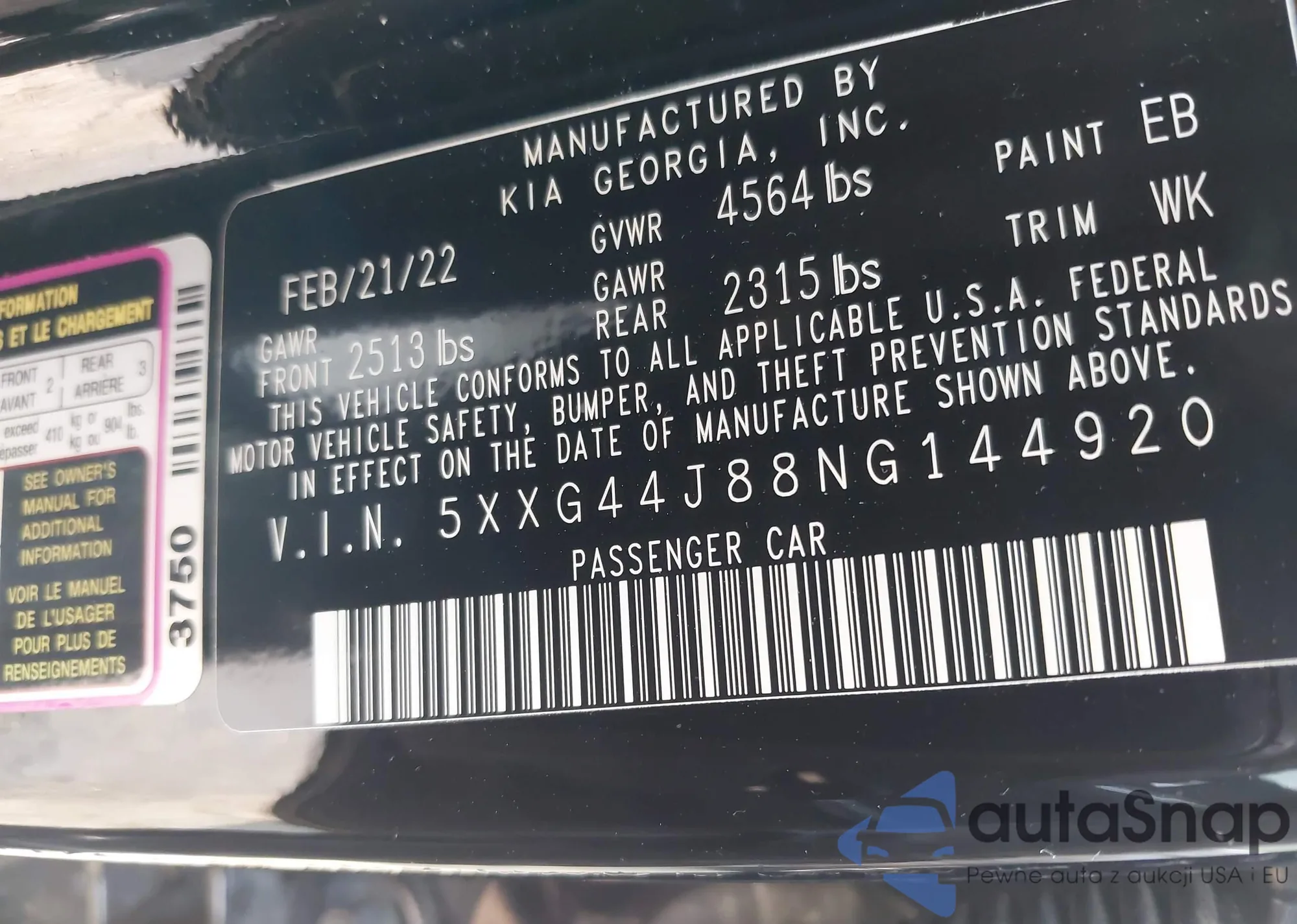 VIN: 5XXG44J88NG144920