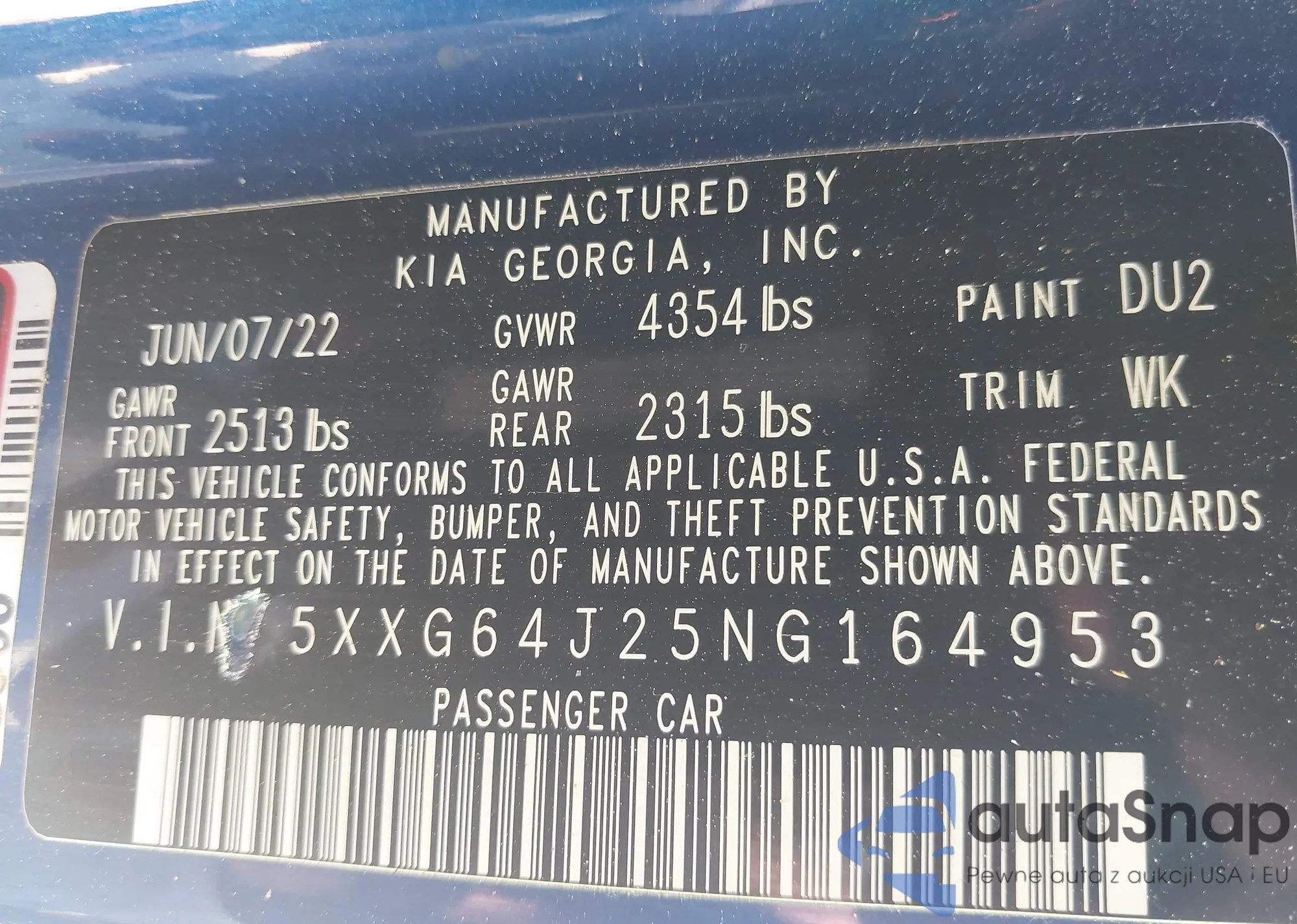 VIN: 5XXG64J25NG164953