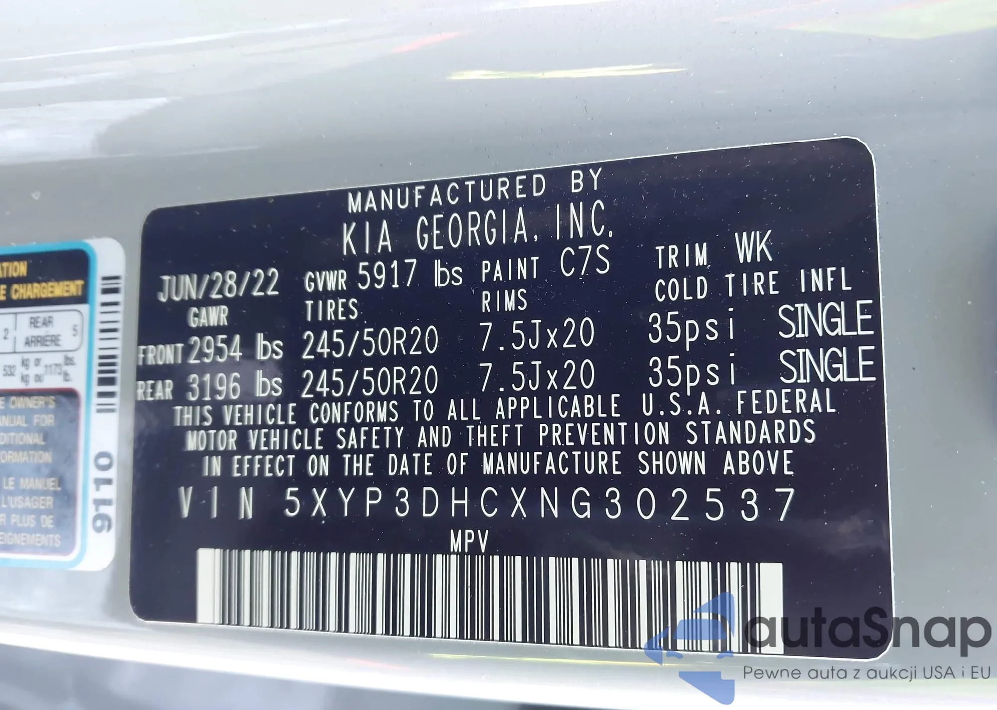 • VIN: 5XYP3DHCXNG302537