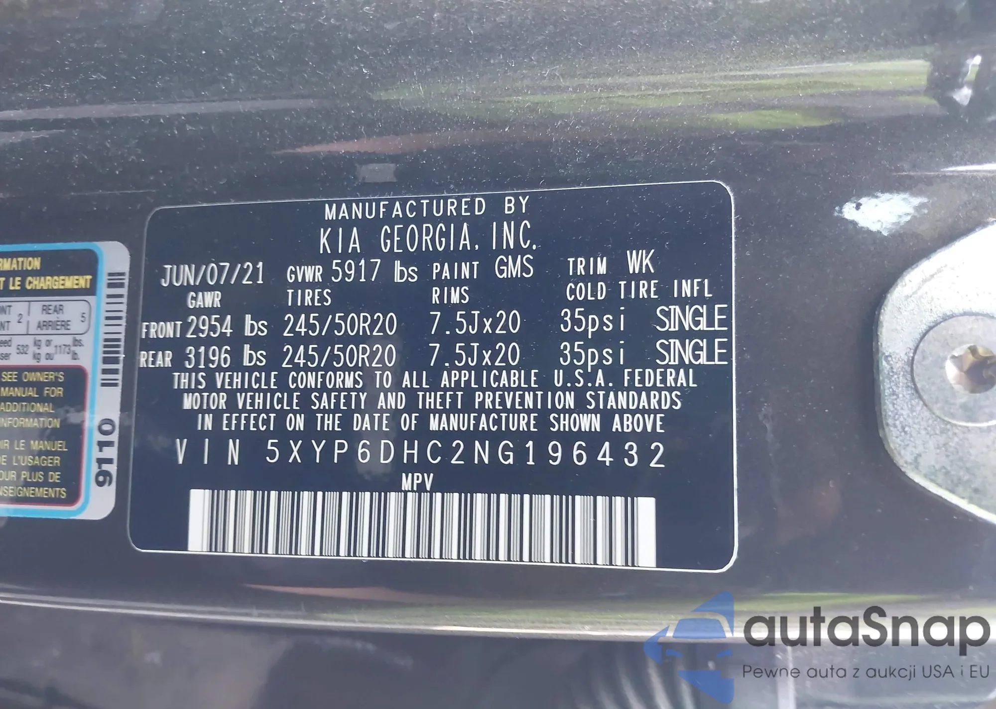 VIN: 5XYP6DHC2NG196432