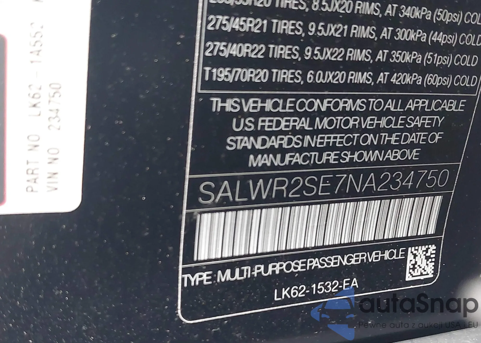 • VIN: SALWR2SE7NA234750