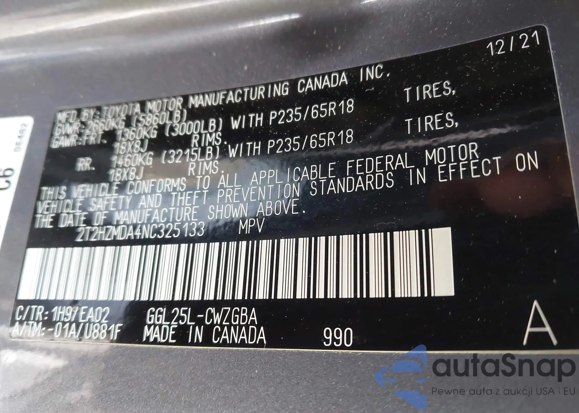 • VIN: 2T2HZMDA4NC325133