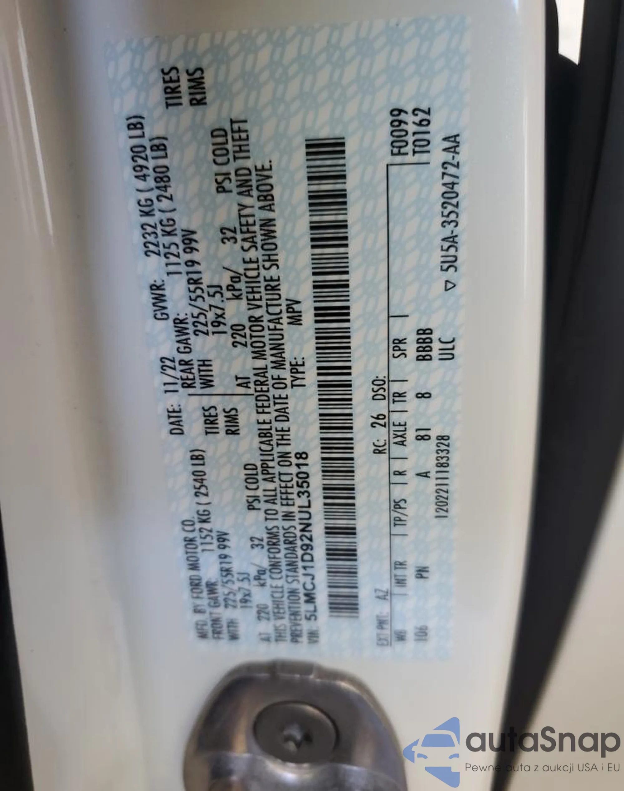 The car Lincoln Corsair 2022 (VIN 5LMCJ1D92NUL35018) has already been auctioned 0 times or is sold by an unverified seller. We recommend checking the Carfax report and confirming registration possibilities before purchase.