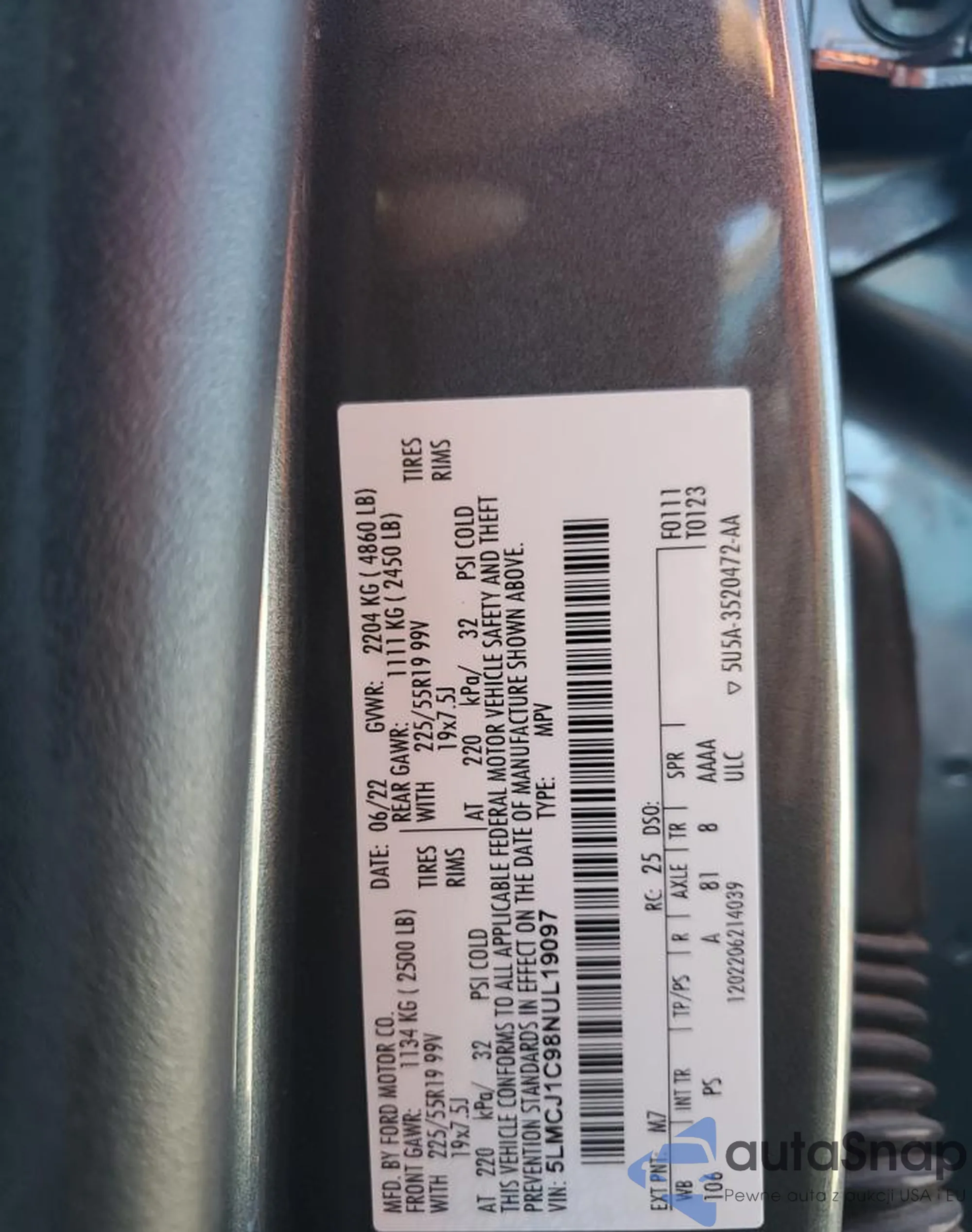VIN: 5LMCJ1C98NUL19097